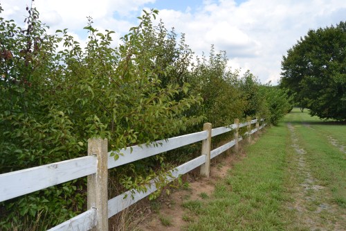 A driveway surrounds the cemetery, and this was the fence at the back of the church ruins. I thought it was interesting that the posts are made of stone, or cement. perhaps.
