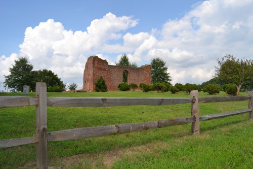 These are the ruins of the Old White Marsh Episcopal Church near Trappe, Maryland. According to the historic marker, the church was built before 1690, burned in 1892 and was partially restored in 1977.