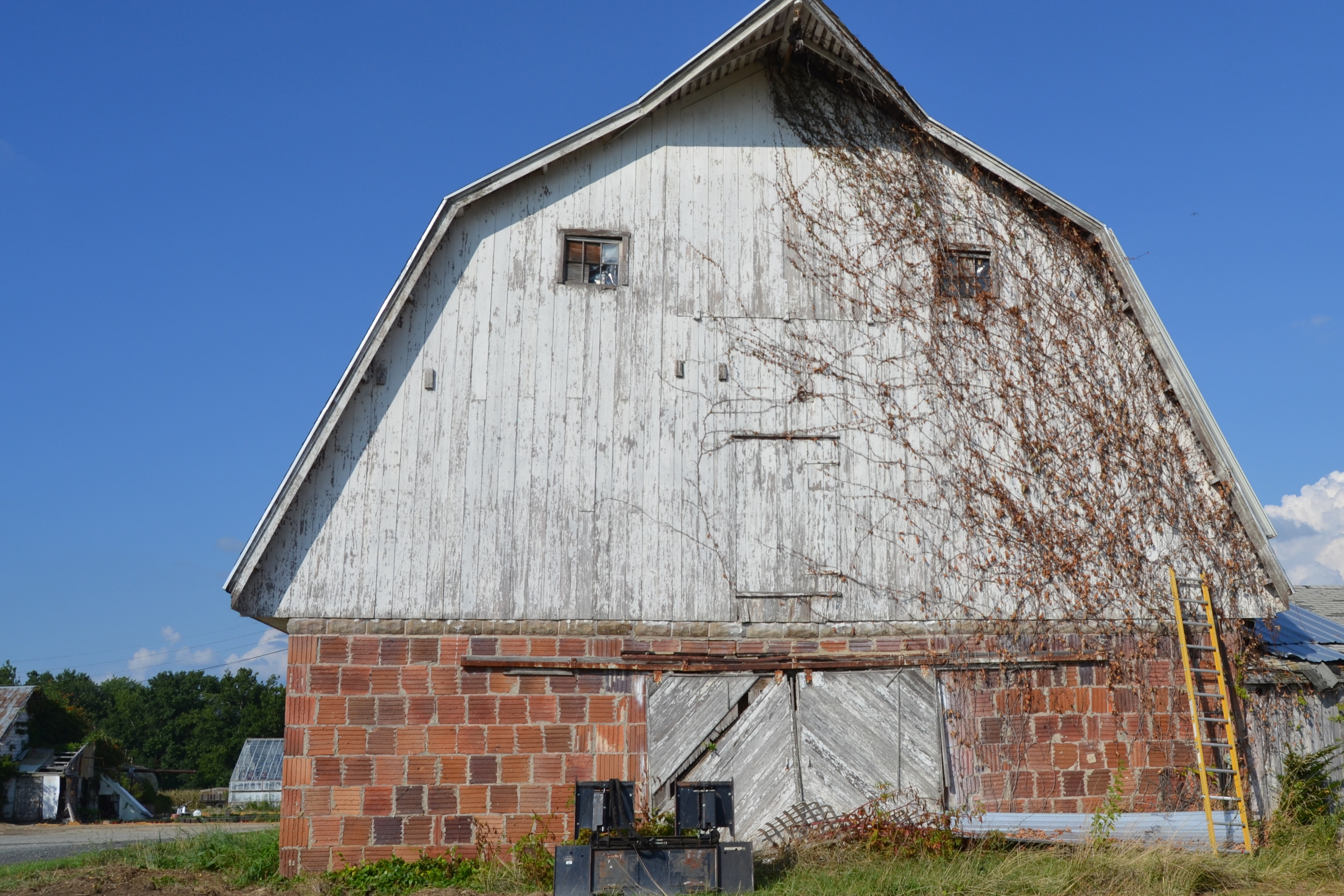Hmmm, that IS a strange looking brick or whatever it is… I’m wondering if it’s a working farm & flower shop combo! It’s great however, because the barn looks to be in pretty good condition! Great find & thanks so much for joining =)