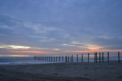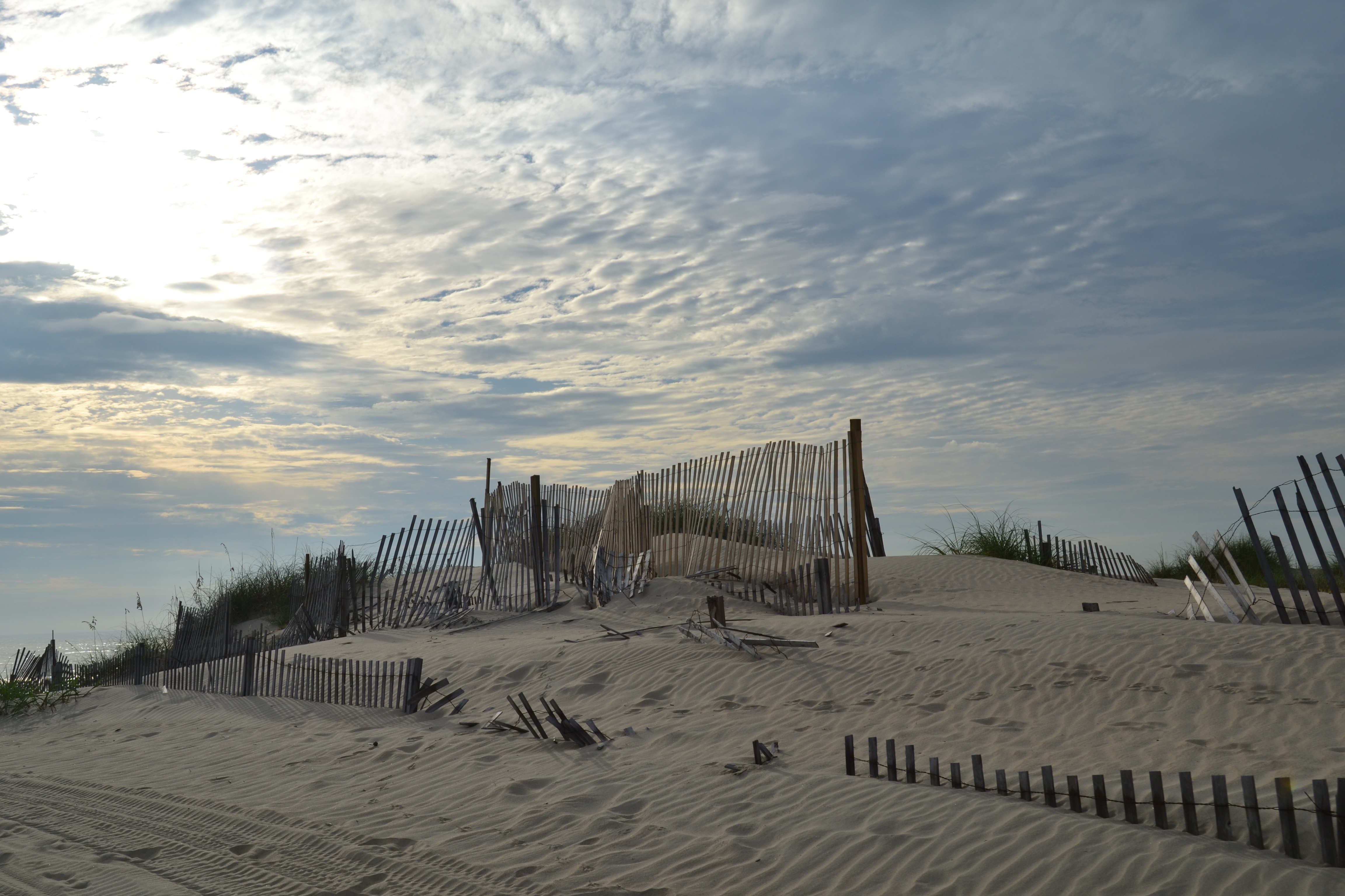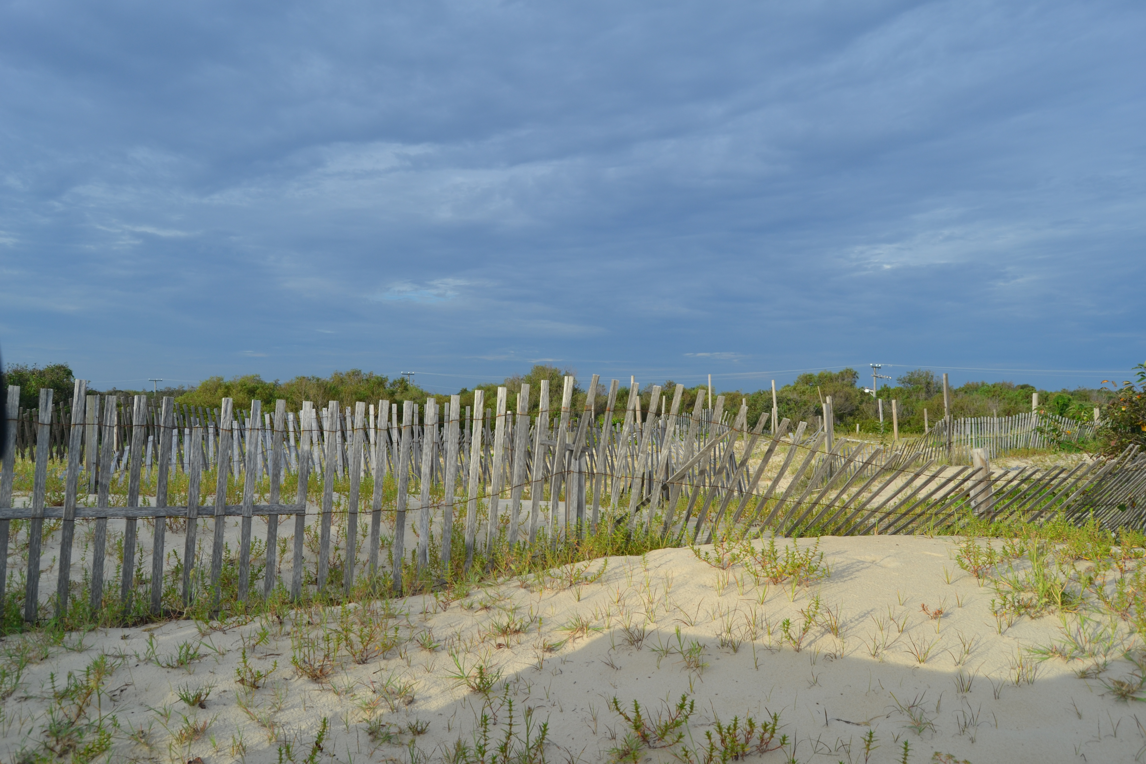 A sand fence along the beach.