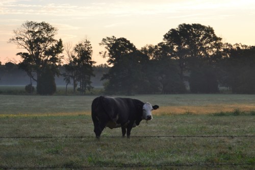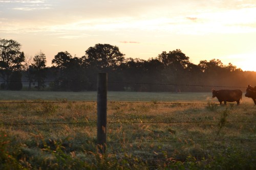 Yesterday morning found me at Motor Man’s parents’ house just after sunrise. Not too far from their property is a cow pasture.