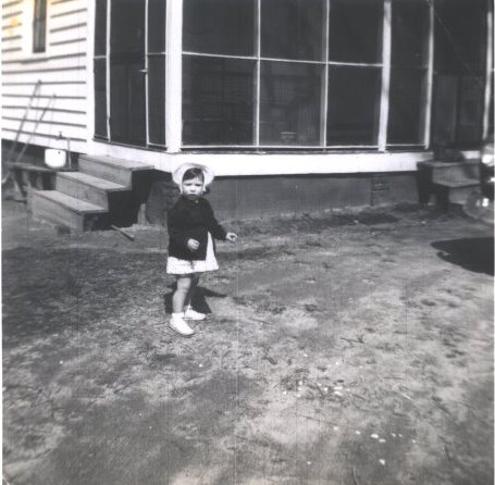 I’ll begin with the front porch, where the most vivid memory would have to be swinging on the front porch that was to the left side. So many hours were spent on that porch when the weather allowed. In this picture of Mama and me, you can see the porch and the swing in the background.