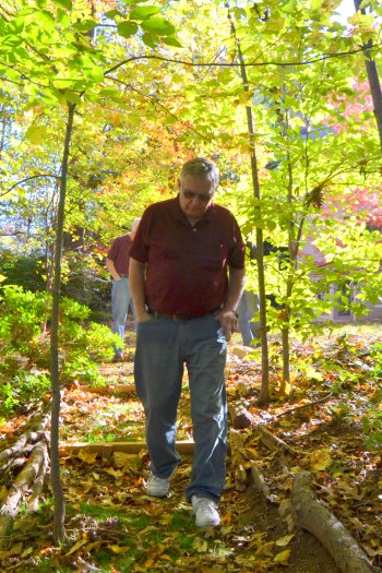 You may recall that Pam (the mom of Sam, One Spoiled Cat) and I are friends. Our fall foliage trip took us near their town, so I gave Pam a call, and she and her hubby invited us by for a quick visit. Sammy is also One Shy Cat, so we didn’t get to meet him. If you’re one of Sam’s followers, you’ve read about their little “trail” behind their house.
