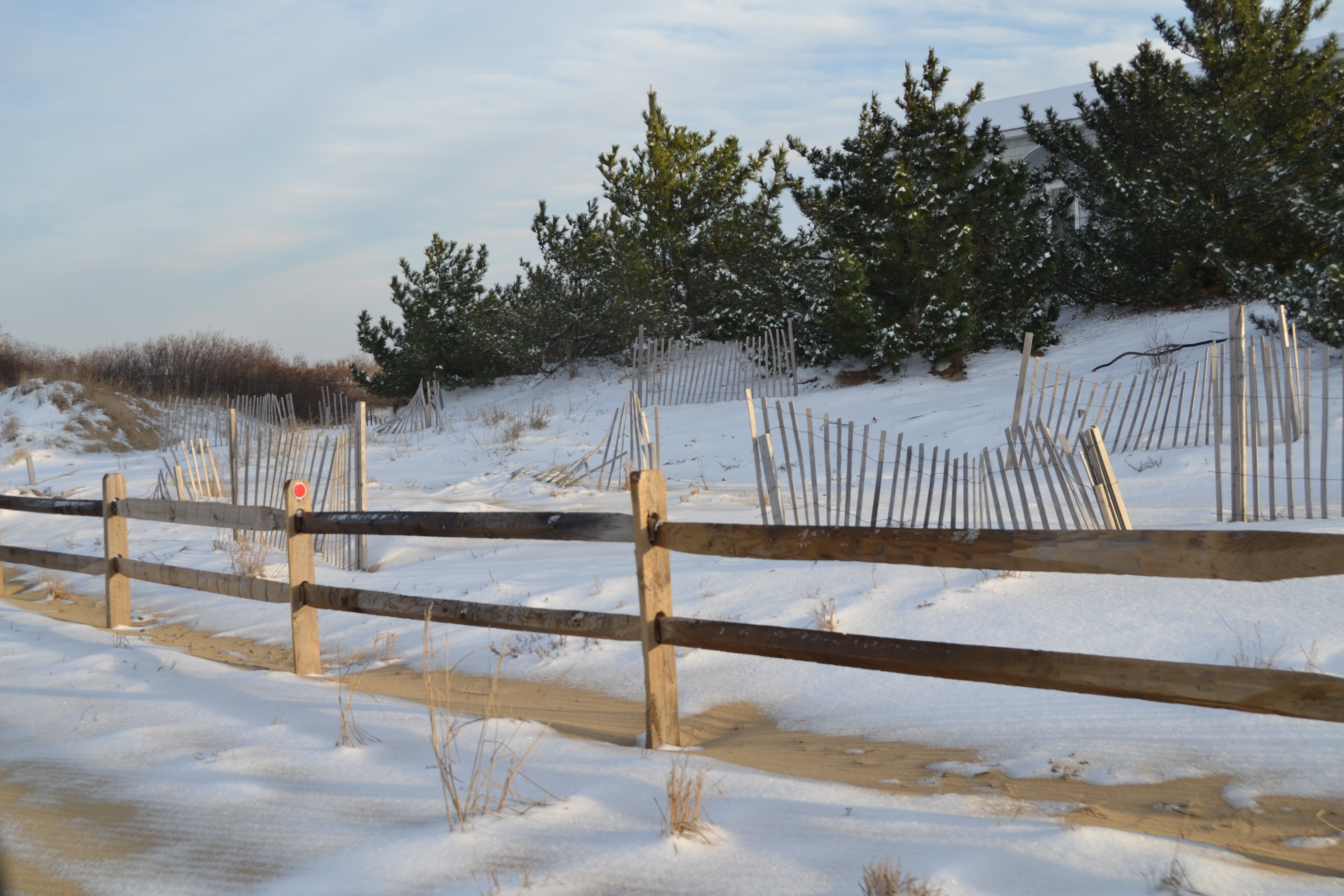 Sand snow fences.