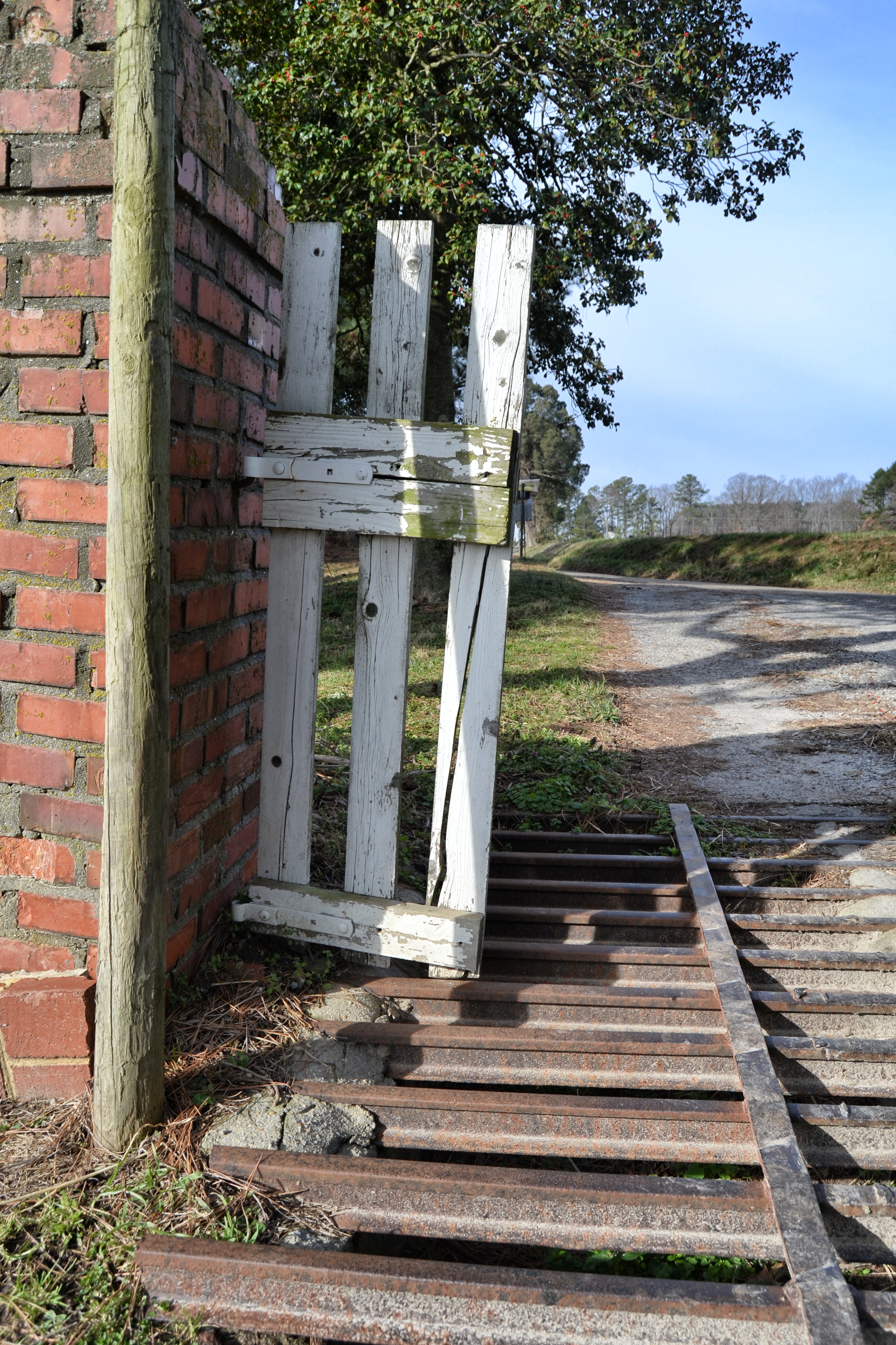 Motor Man and I went on another of our Sunday drives last week, and as we drove by this gate, he heard the all-too-familiar: “Oooh, that would be a good picture!”. So he made a u-turn.