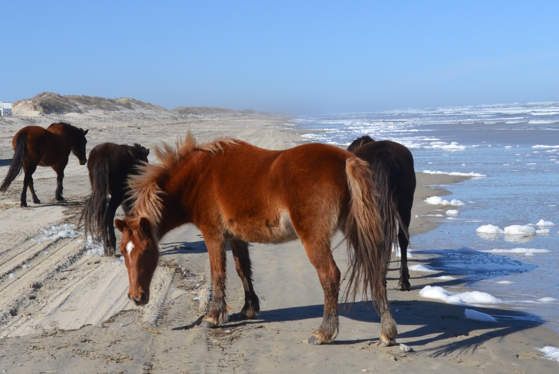 It was early afternoon when we arrived, so we had a quick lunch and drove up to the beach to look for horses. (It had been so long since we’d seen them, I was having withdrawals.)