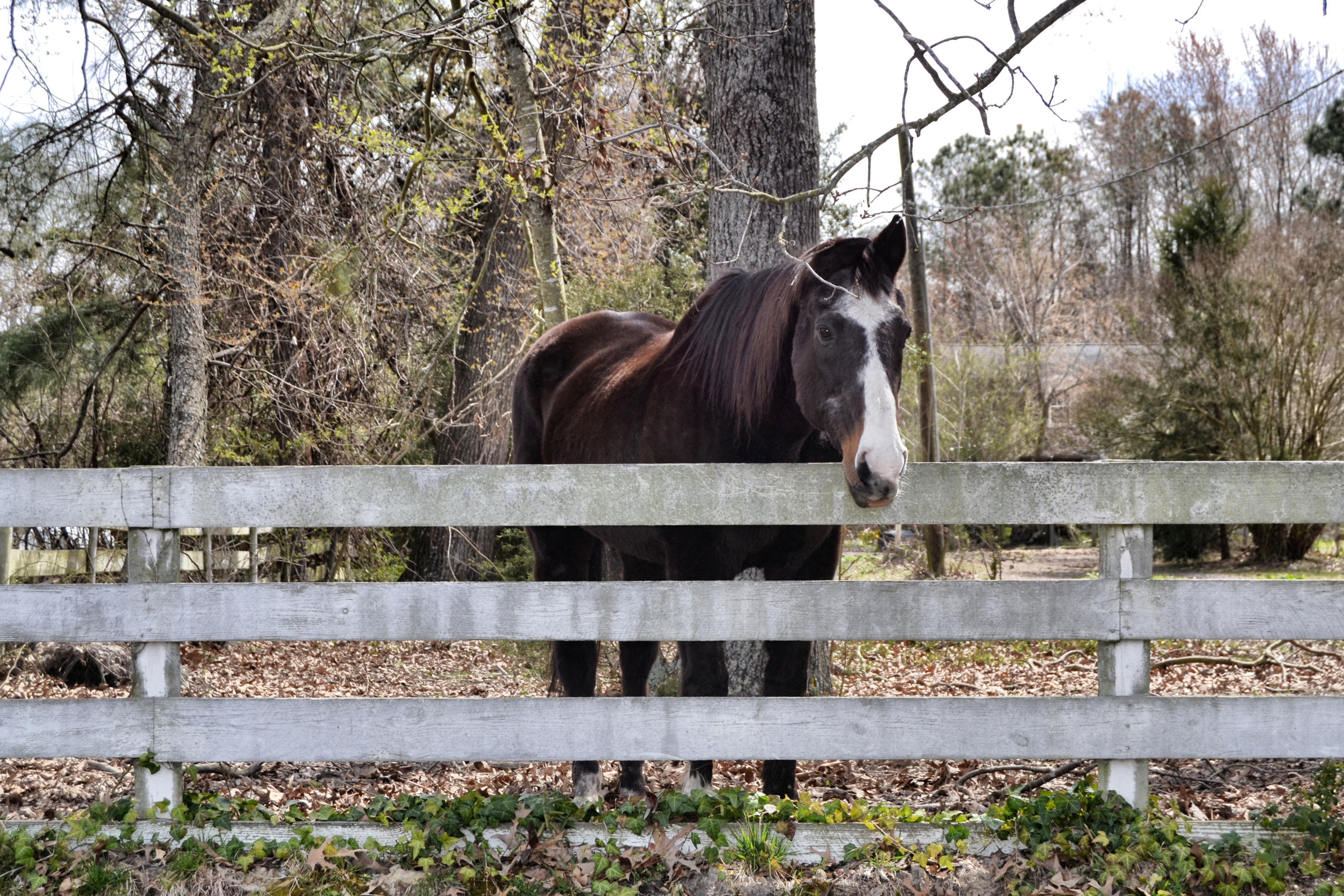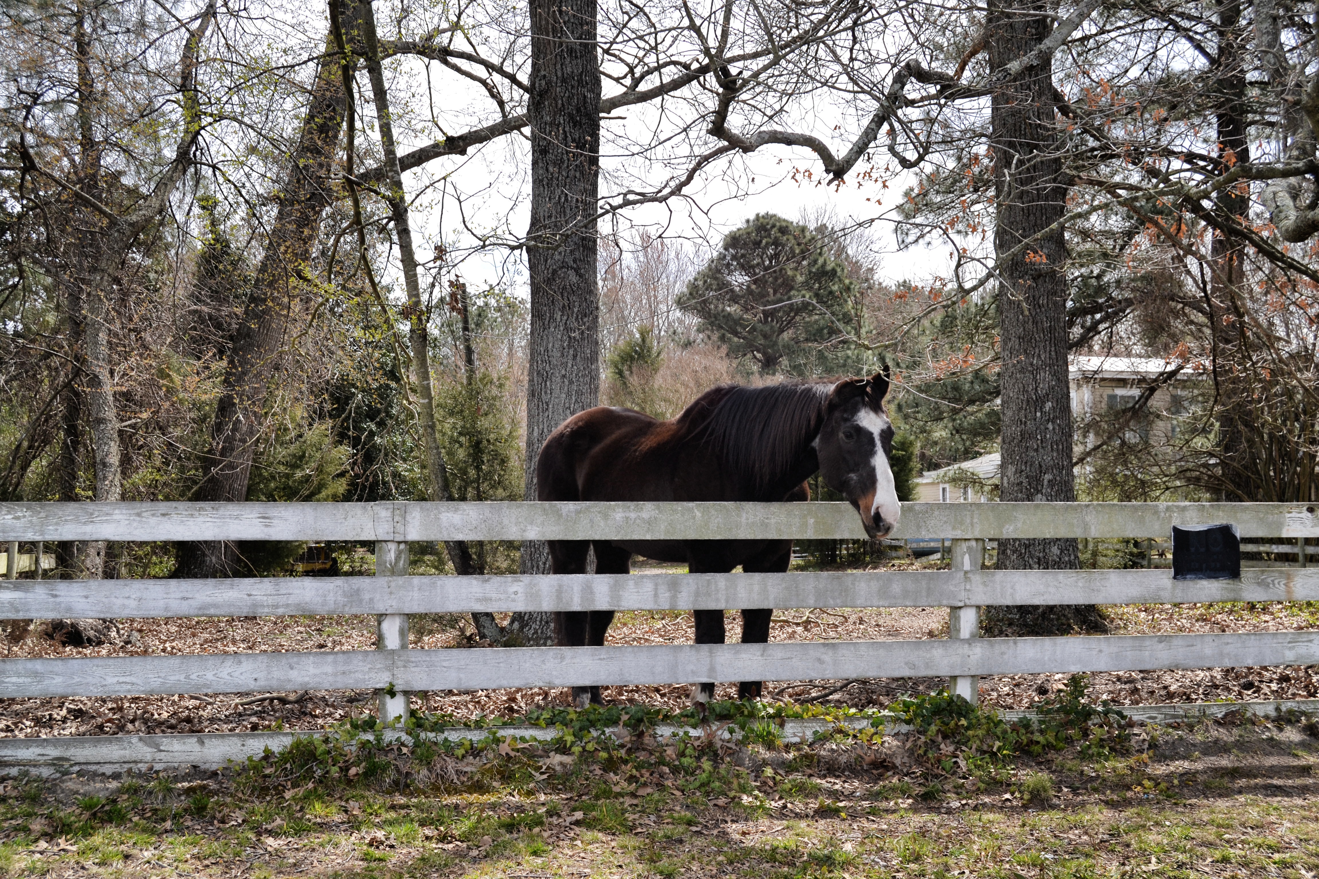 A friend was recently told that this is a retired carriage horse from Colonial Williamsburg.