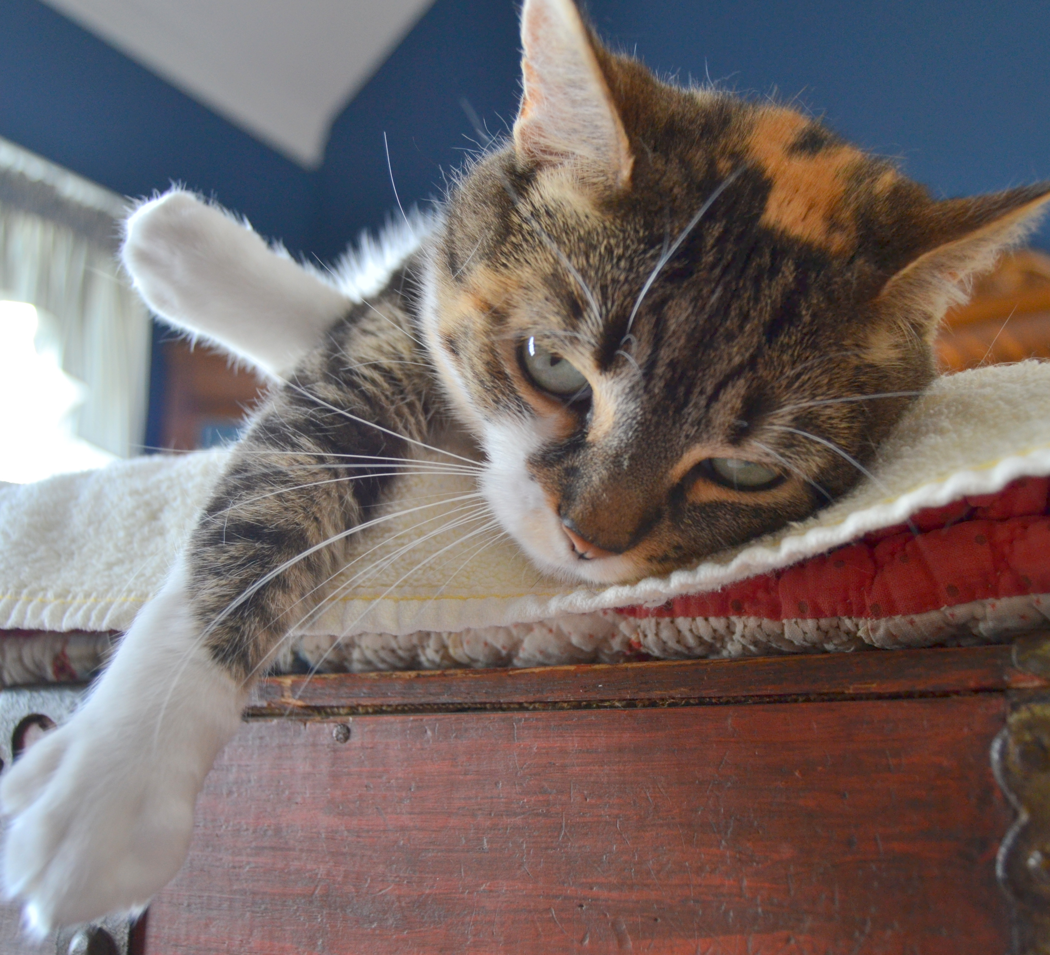 …peacocks, and even zebras, for goodness sakes. (And don’t even get me started on that picture of “someone” holding a baby goat…) But not one single cat.