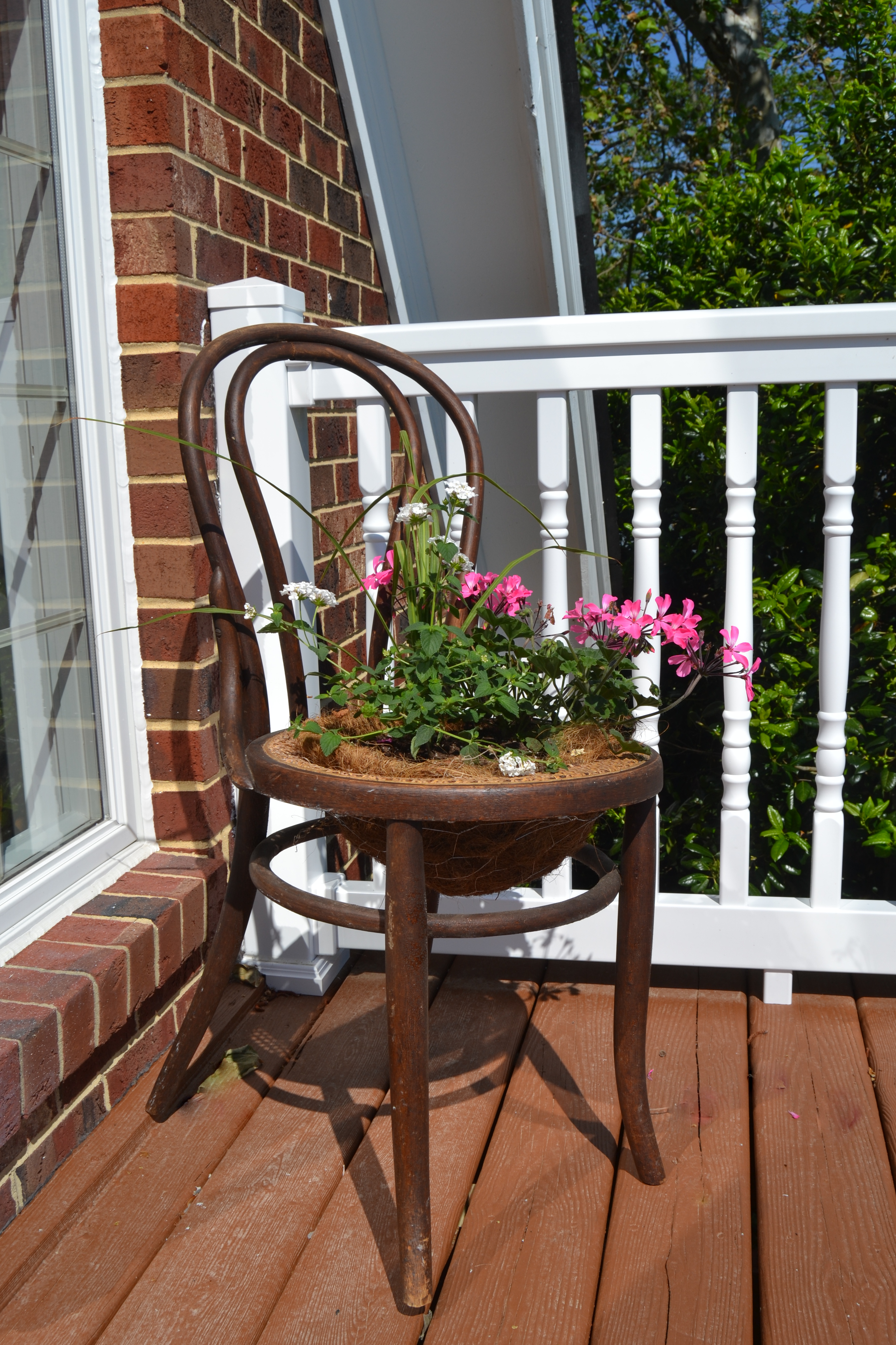 When we left there, we went to an antique/junk shop, where I bought this “ice cream parlor” chair (for $10). Later, Motor Man helped me make it into a planter.