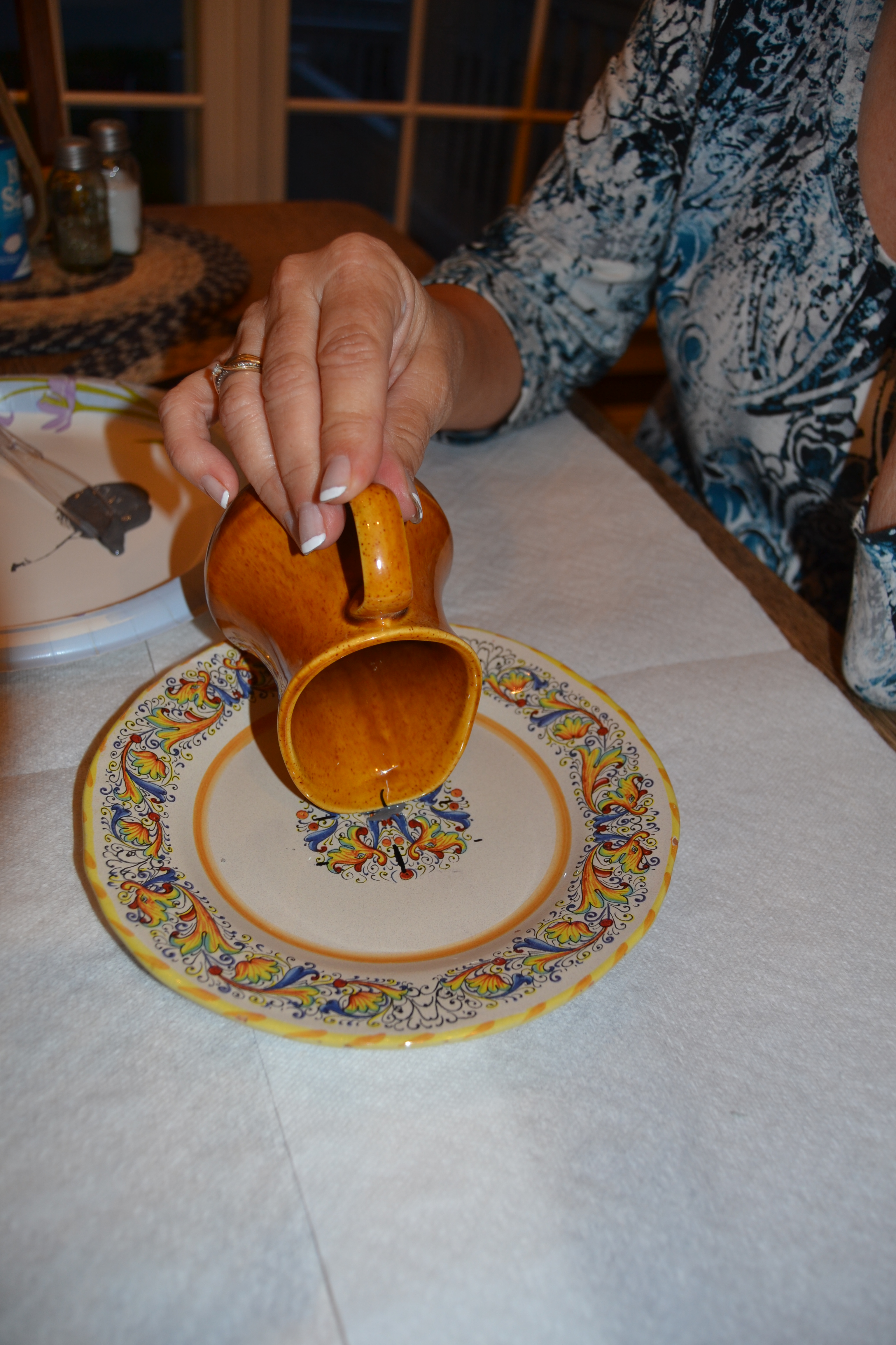 Then I placed the creamer on the saucer and let the glue set up for 24 hours. Thankfully I didn’t have to hold it the entire time.
