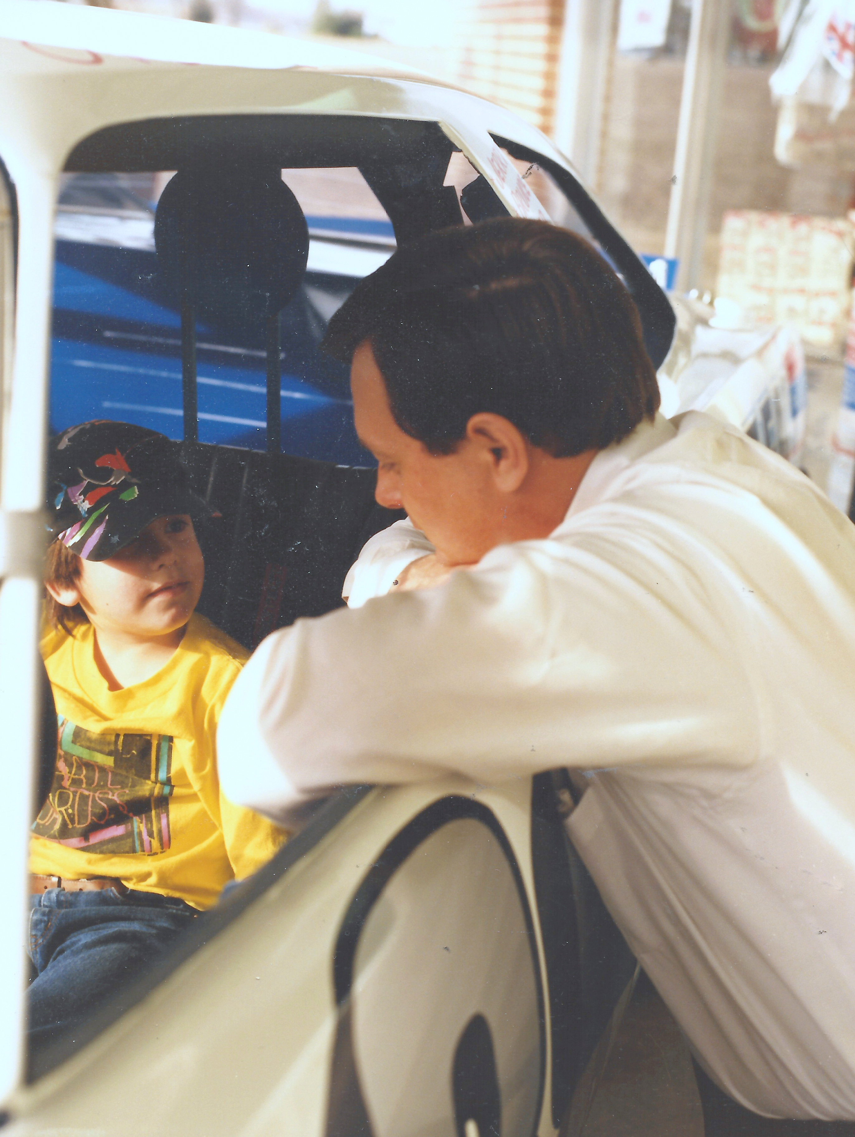We’re also celebrating Father’s Day today. Although at the time, Motor Man was a family friend, I’m sharing this picture taken of him and Marshall a “few” years ago. I think Marshall was around 6 years old, and he was sitting in a race car that was part of an Open House at Motor Man’s business. (We had no way of knowing that Motor Man would, one day, become Marshall’s step-dad.)