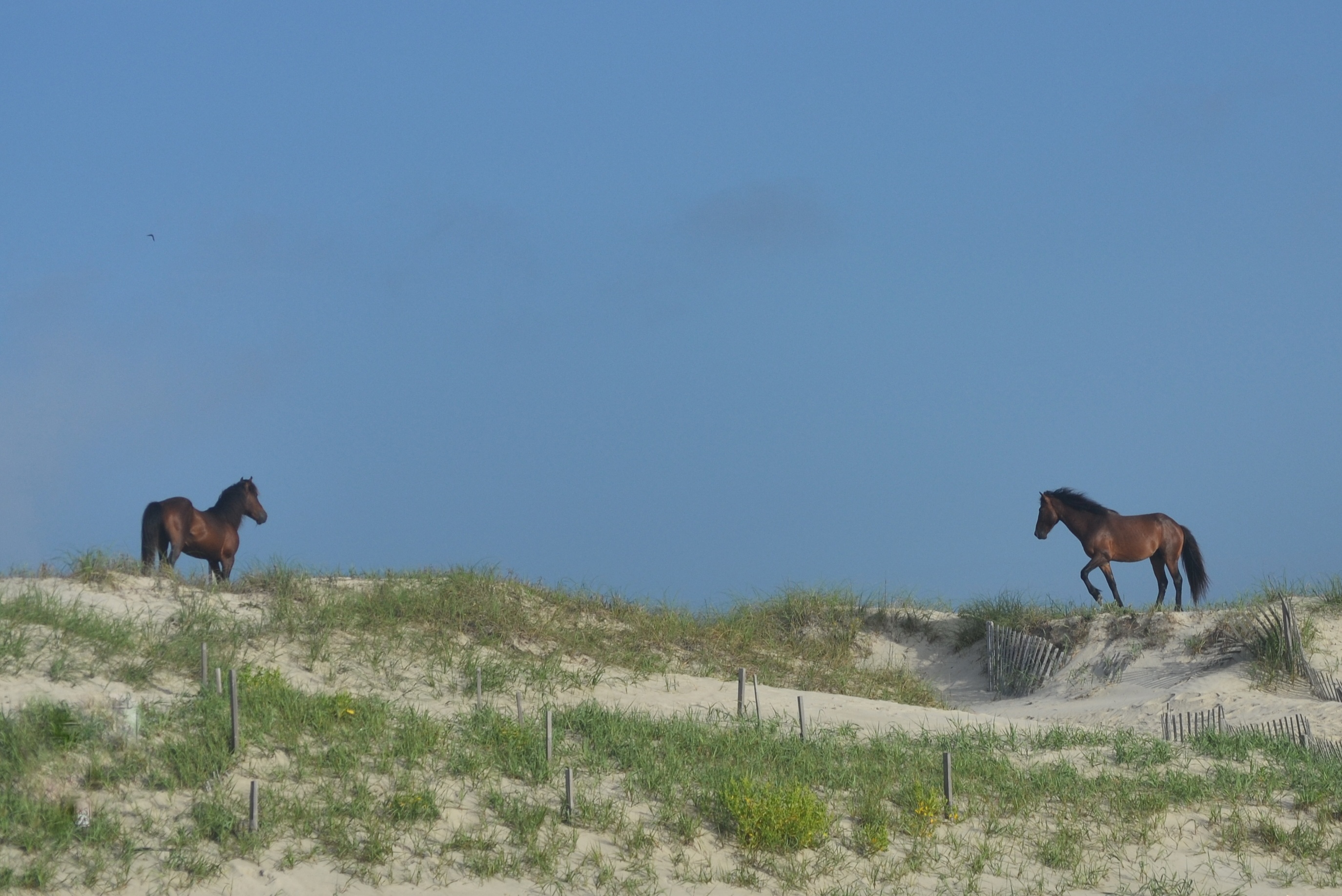 The horse on the beach left his harem and headed toward the dune, while we all waited for the showdown.