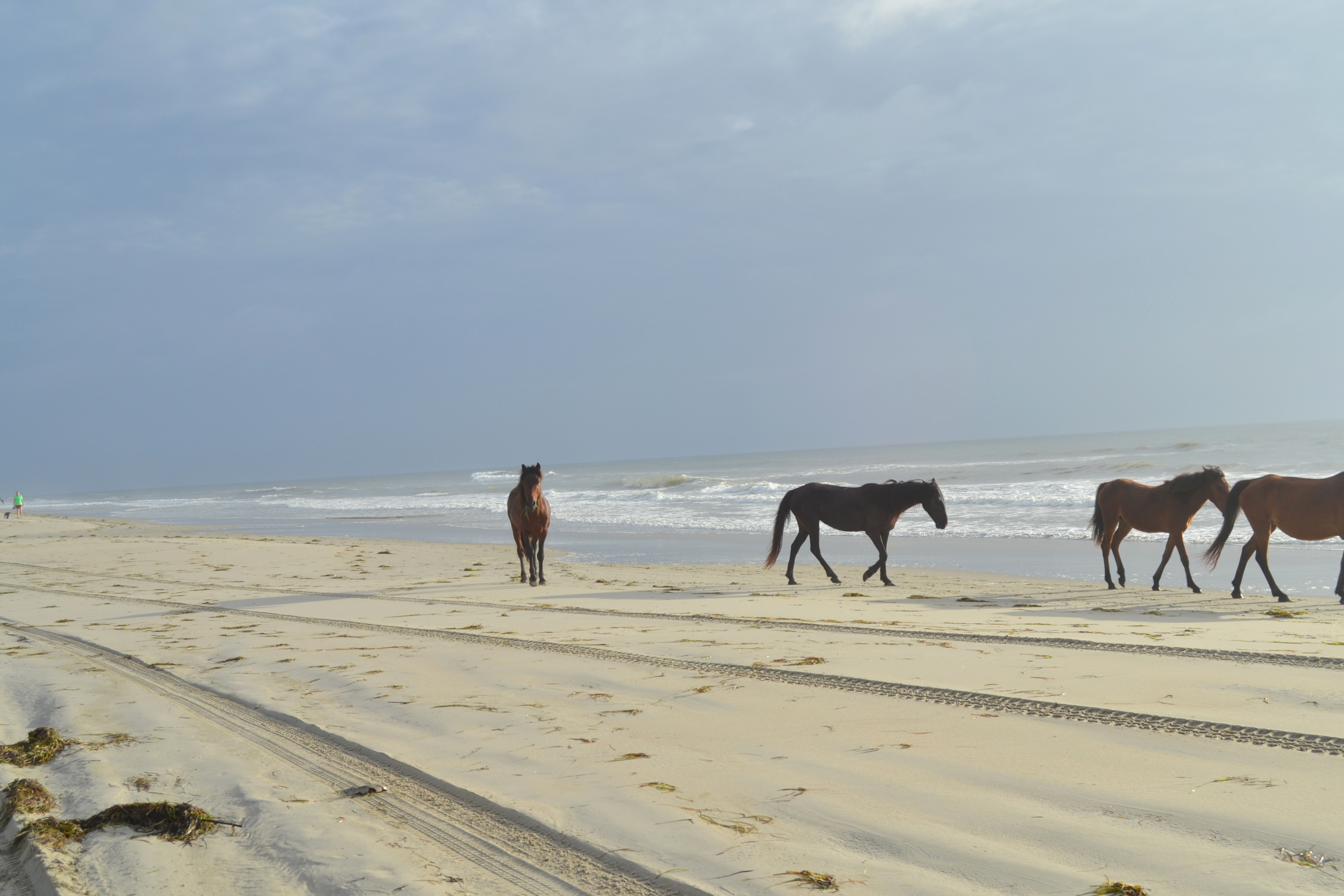 We saw this group of horses walking along the beach. Jimmie, my “horse expert” told me that was a stallion at the rear, and to watch the position of his head as he followed the mares. His head in the down position meant he was moving his harem.