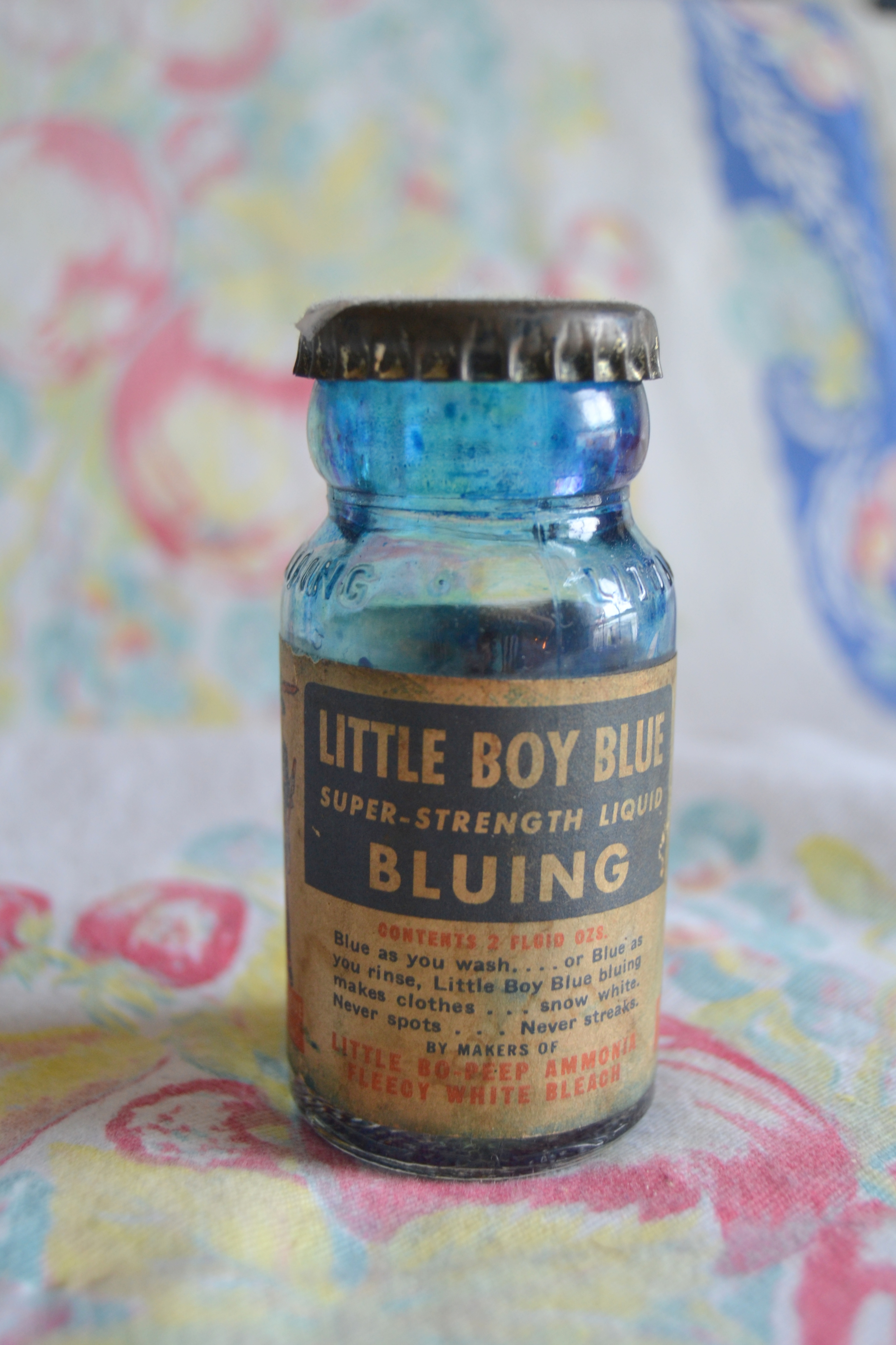 In one of our favorite antique shops, we spotted a bottle of laundry bluing, similar to this one that I have.