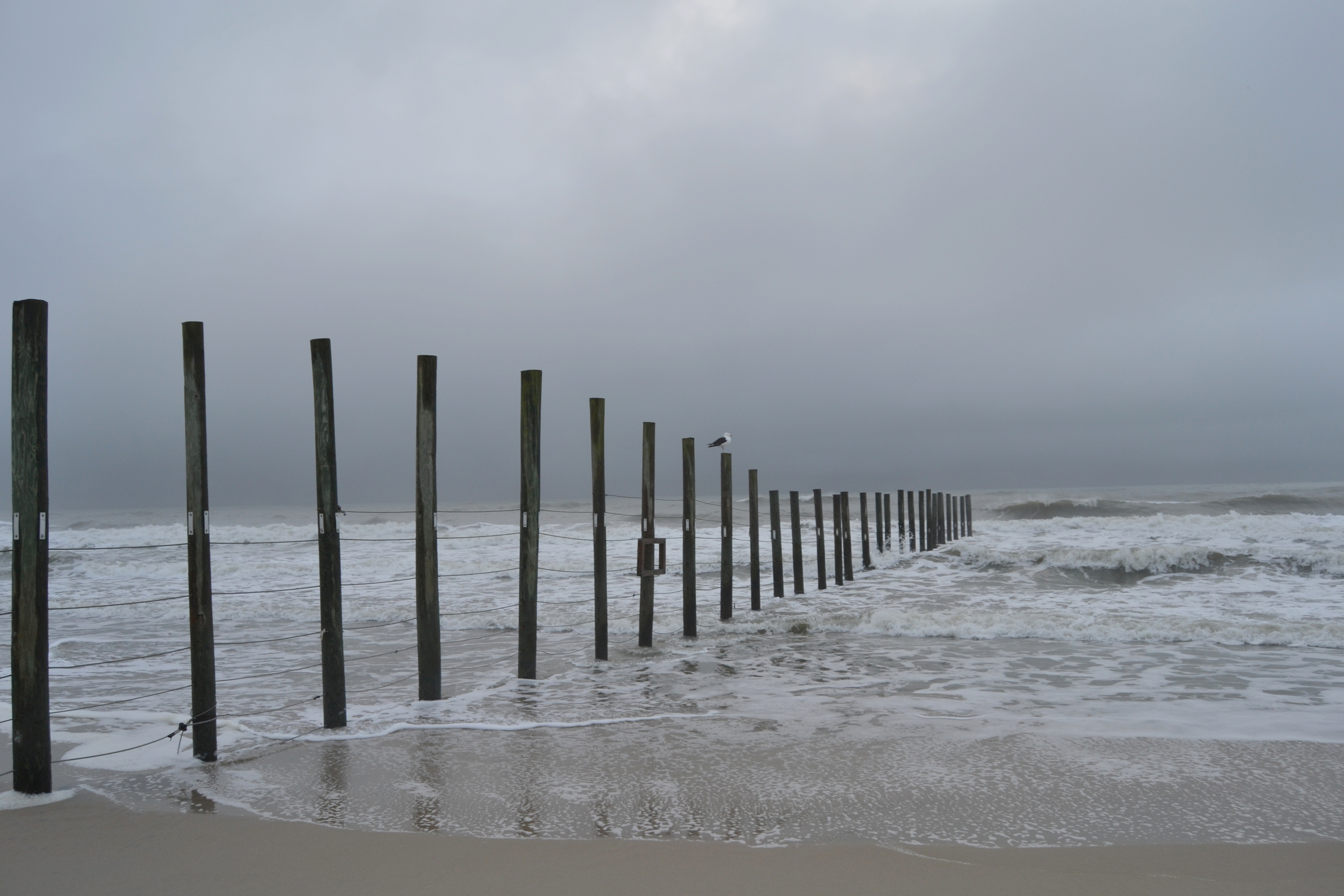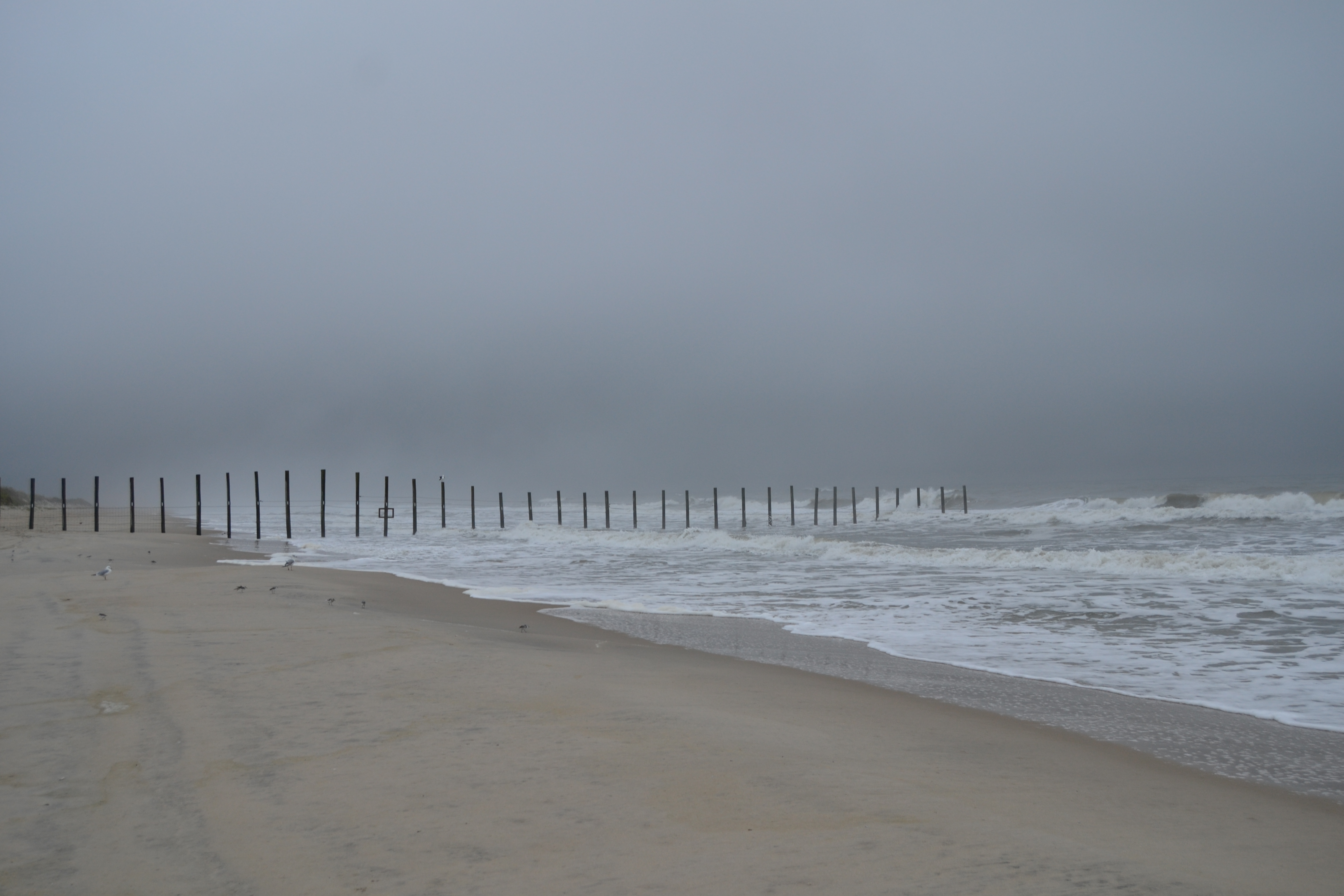 The edge of the surf almost has a lacy look to it in the next picture. This fence on the Virginia/North Carolina state line keeps the wild horses confined to their protected area.