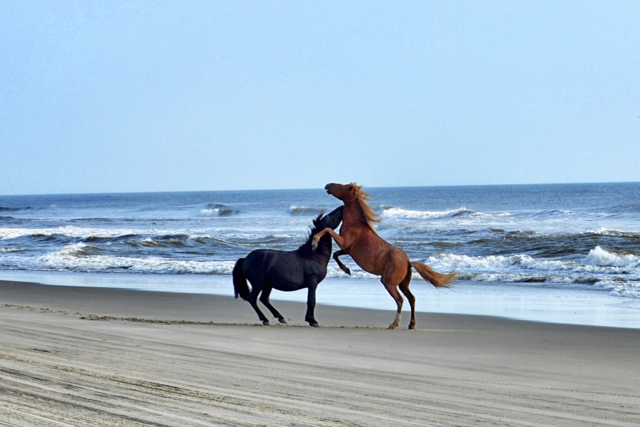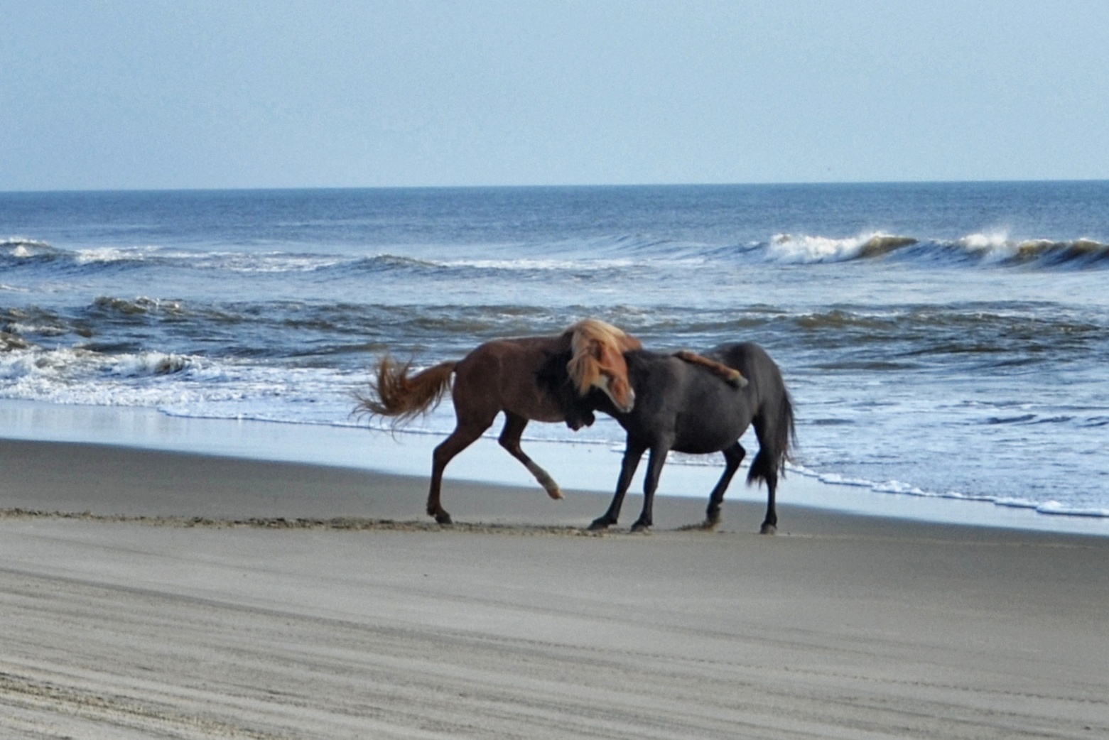 After seeing this display on the Outer Banks yesterday, I have to wonder if female horses don’t also have that problem with the males of their species.
