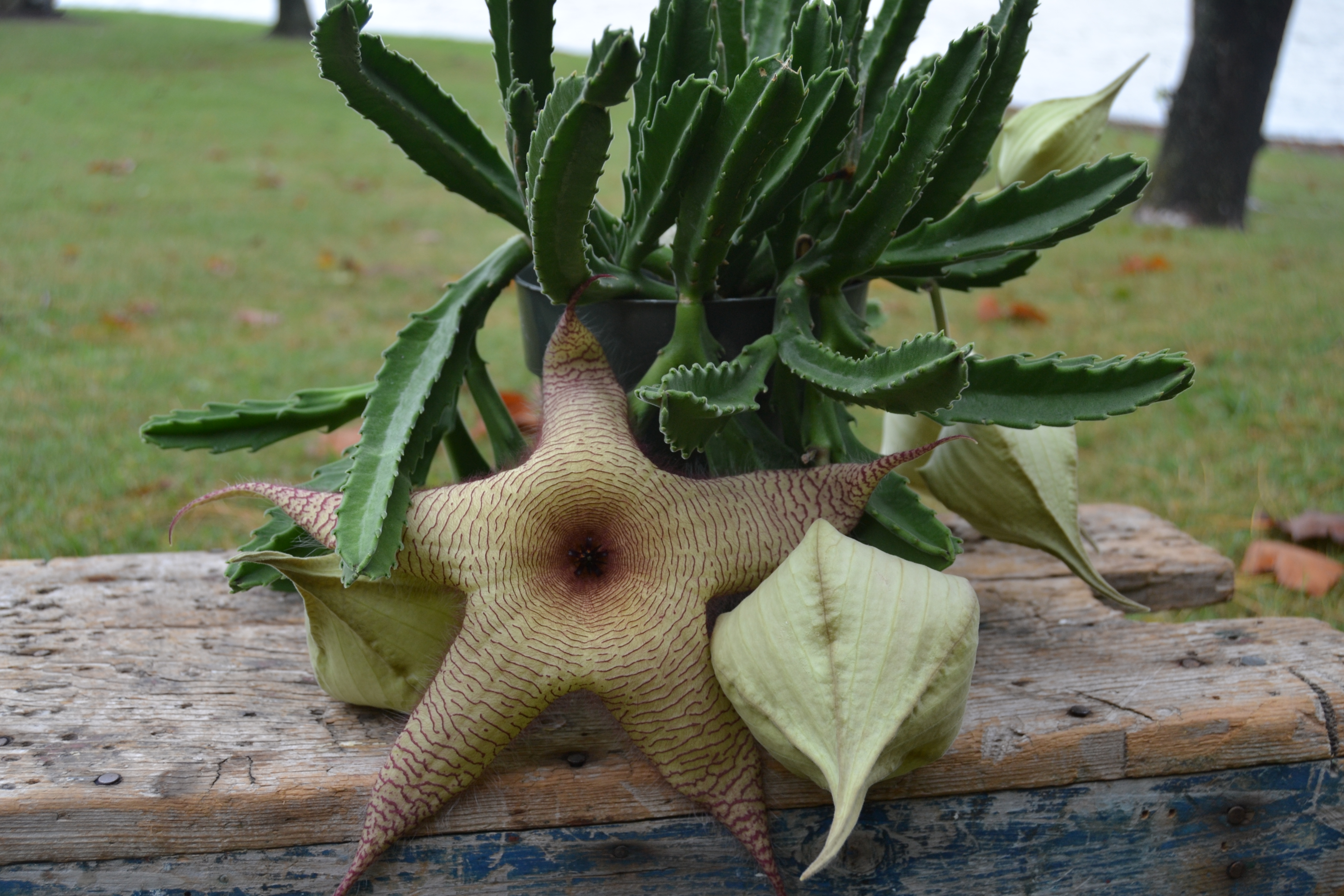 Now, the owner of the greenhouse explained that this is a “carrion cactus”. And the reason it’s called that is because the blooms smell like…..road kill, decaying flesh…you get the idea. She also said that the blooms attract flies. And I said to the owner: “And I’m supposed to keep this plant IN my house?”.