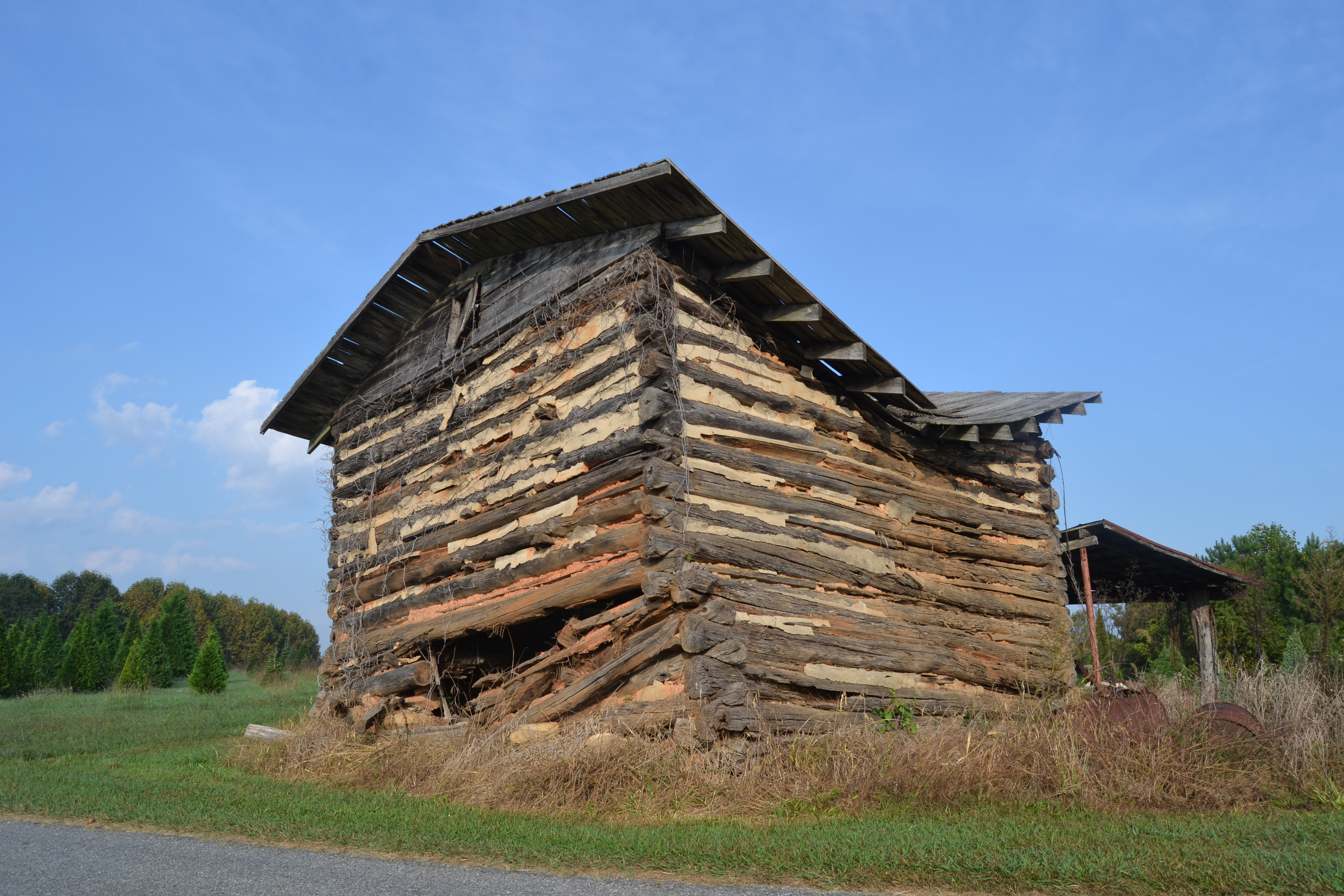 And, beside that, this neat old log structure. Just to the left, you can see the field of Christmas trees.
