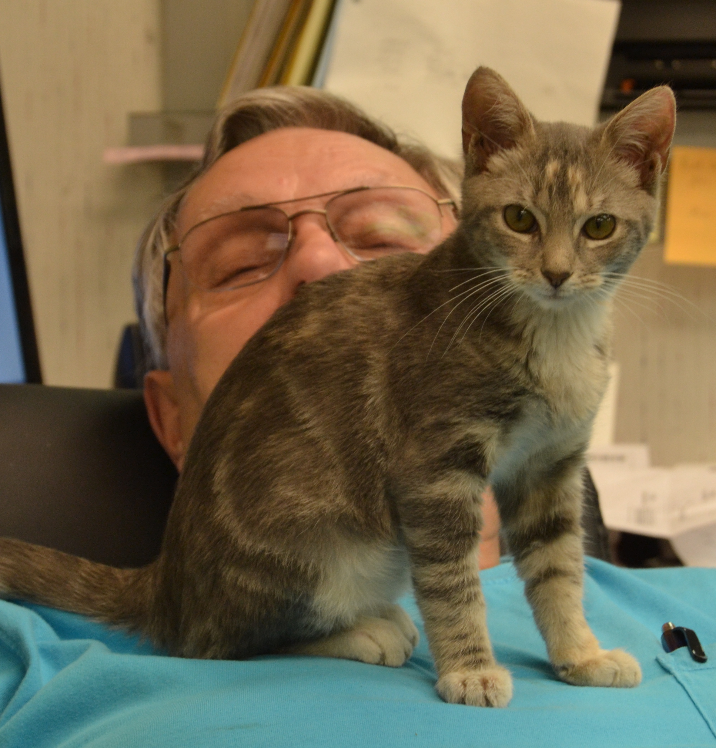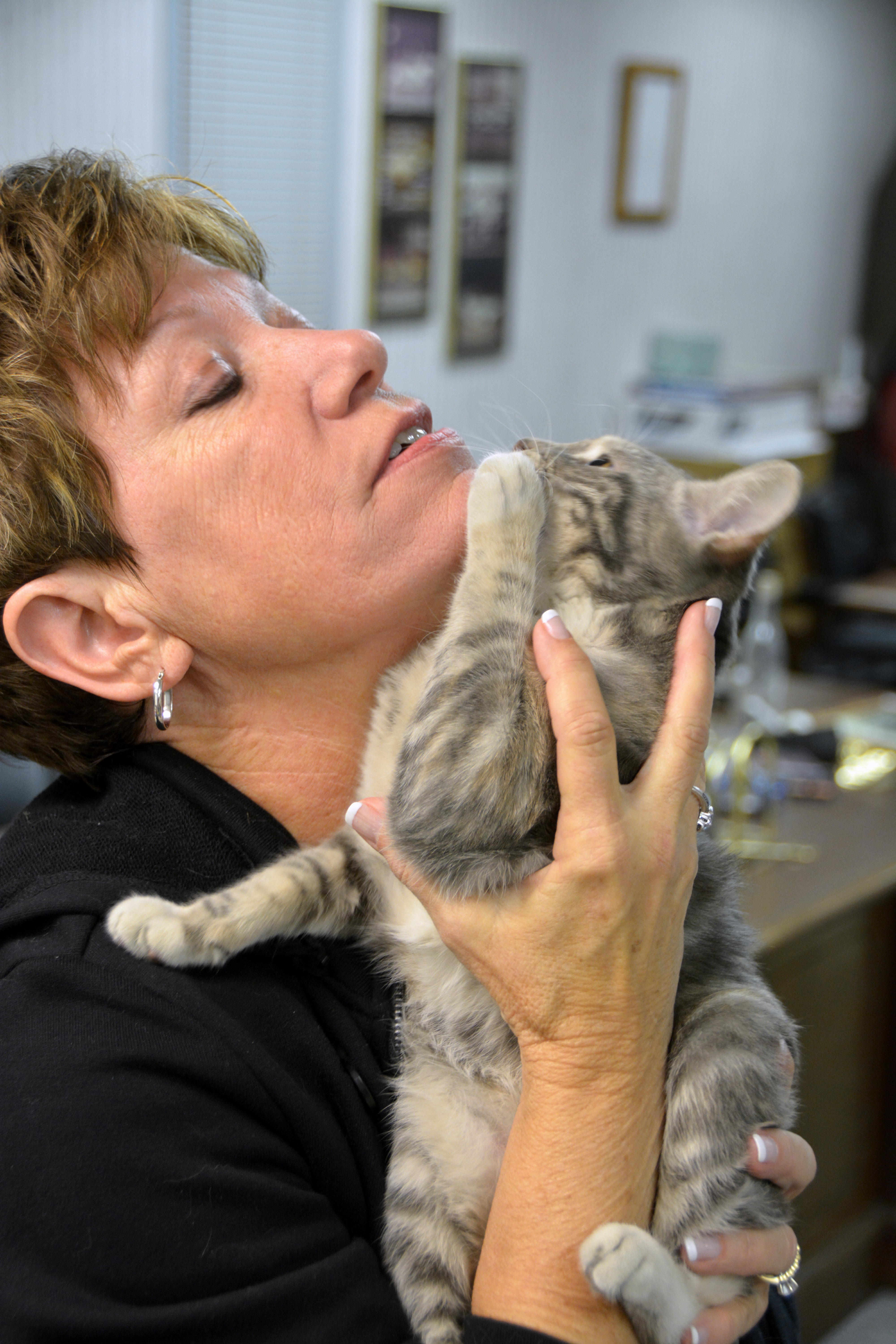 She’s approximately four months old now and weighs almost five pounds. These pictures will give you an idea of how much she’s grown in the last couple of months. The first one was taken August 23,  four days after she found us.