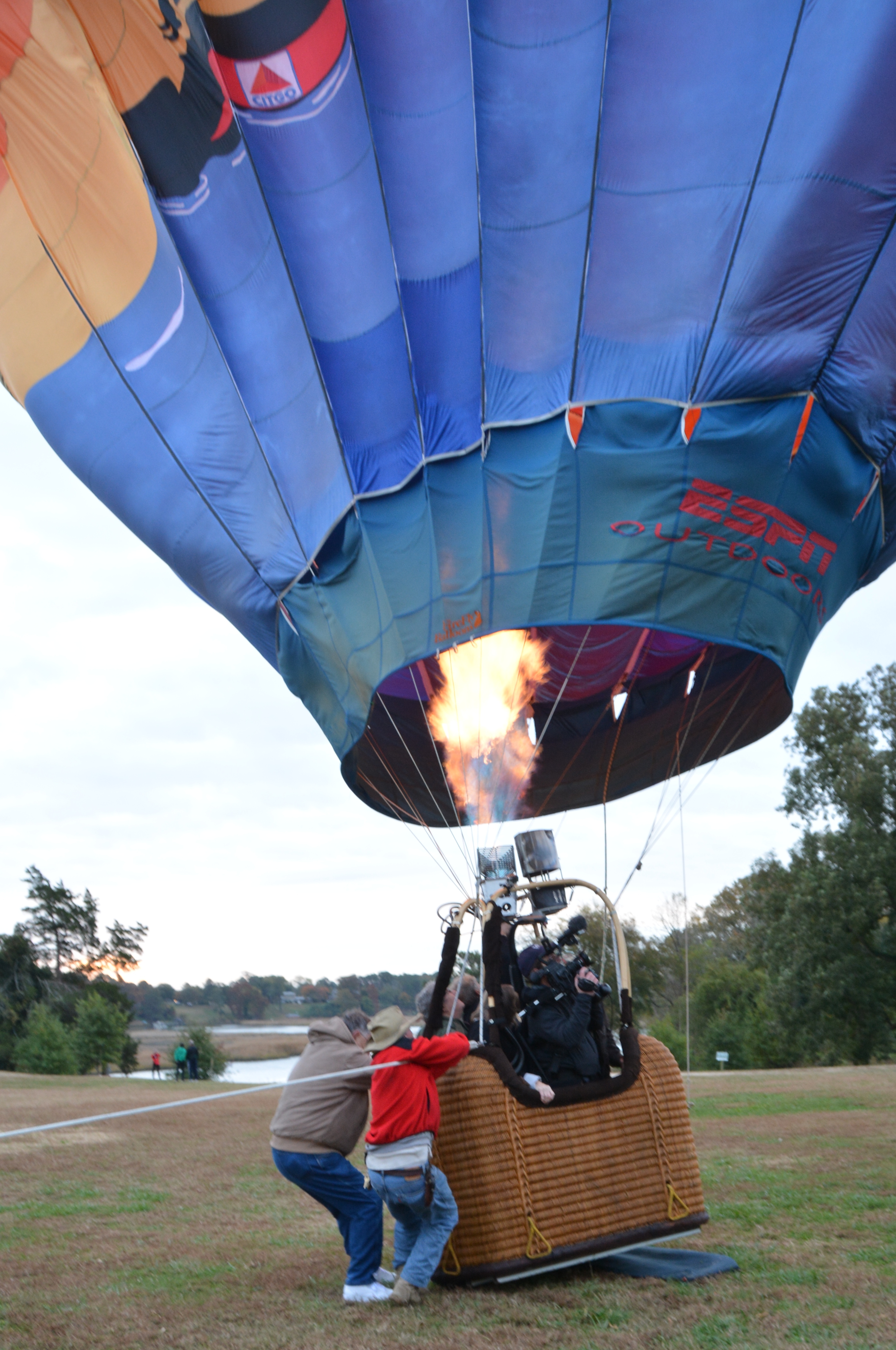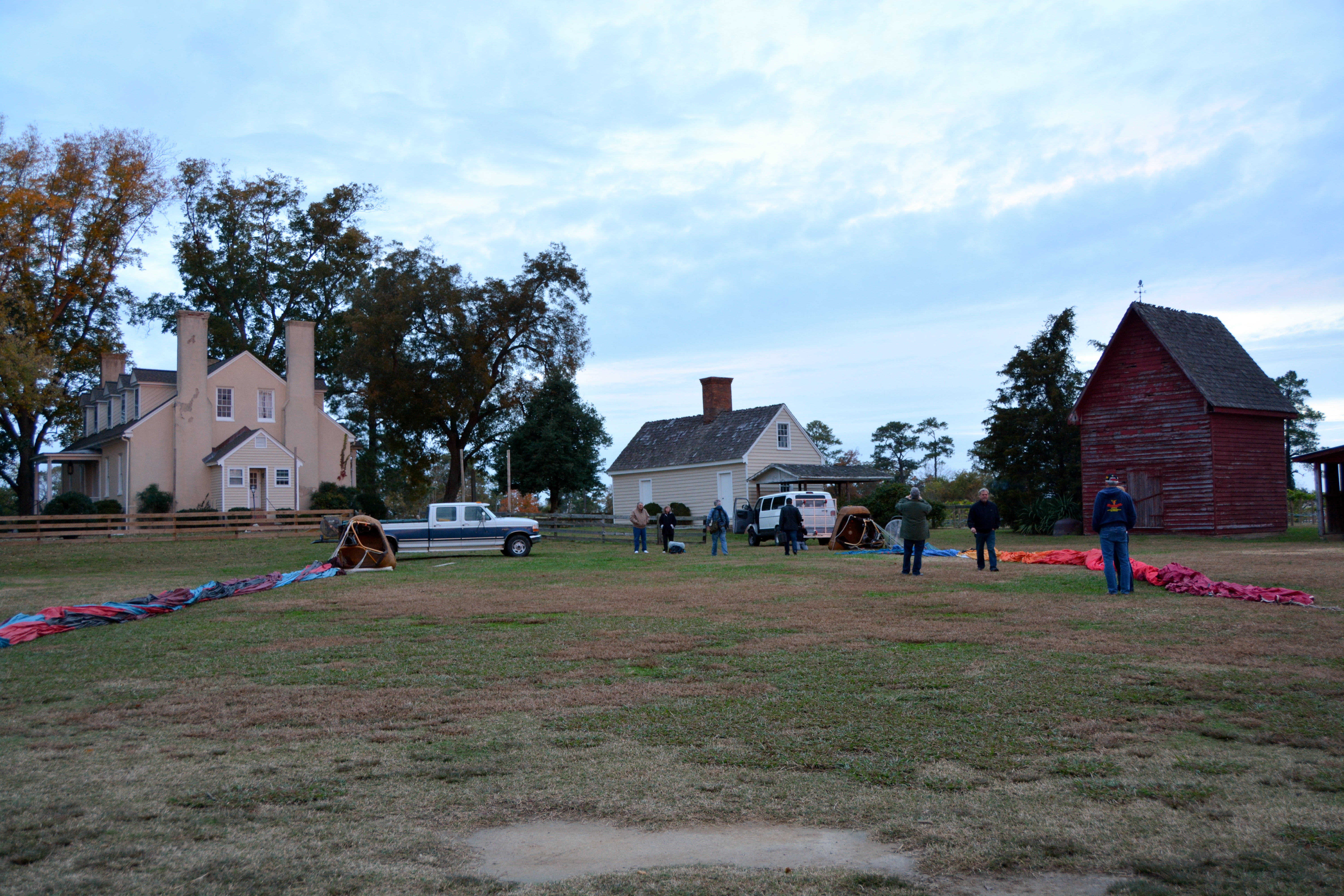 Recently, we learned, through Mark, that members of a production company, hired by the Virginia Historical Society, would be filming some shots of our area from the balloons. The first launch took place just after sunrise Tuesday morning from our local park, and Motor Man and I were invited to be there.