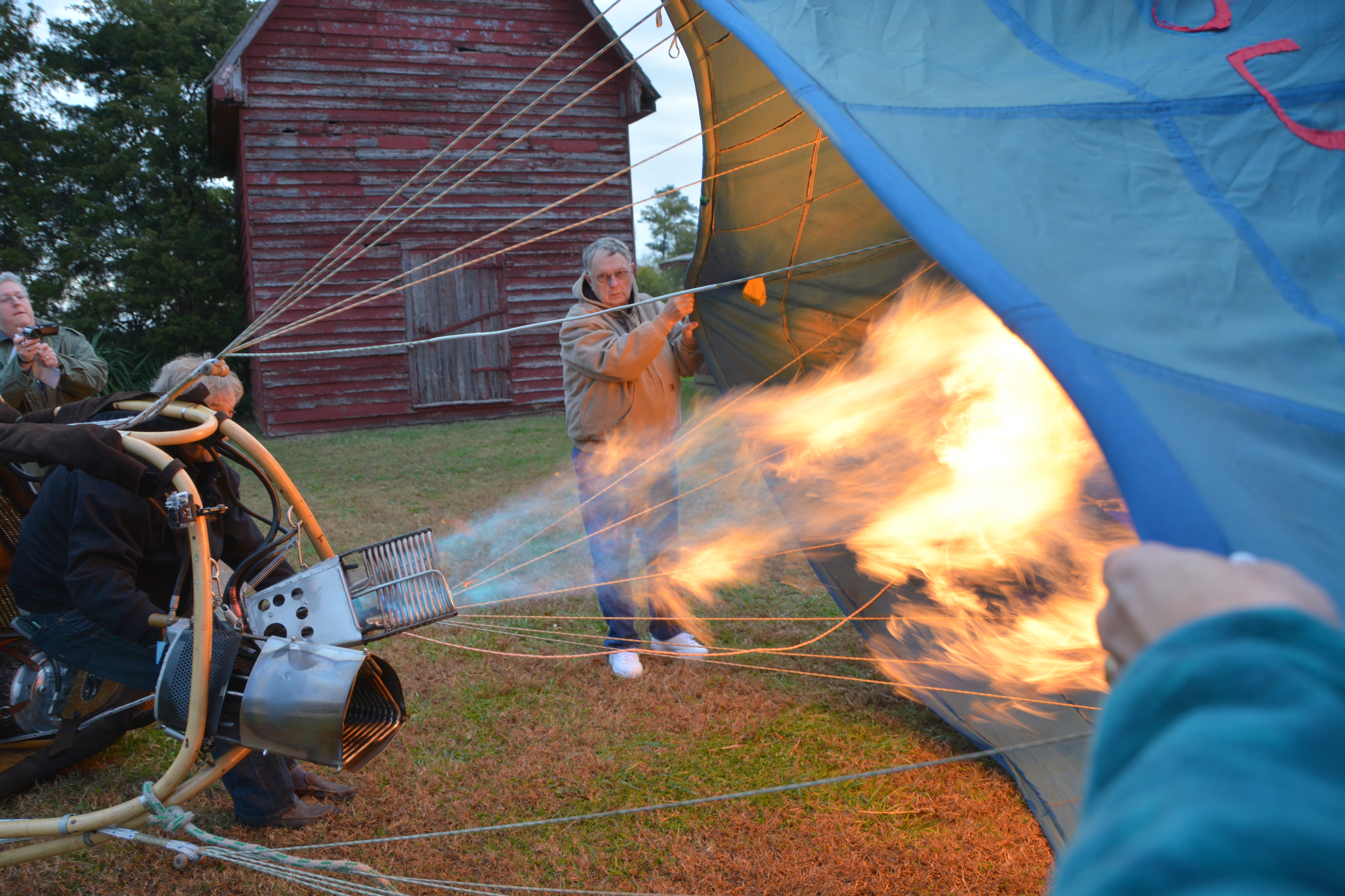 Motor Man and I helped hold one of the balloons as it was inflated. Then, heat from the burner lifted the balloon off the ground. (That’s my hand you see at the bottom right of the photo. We were a little closer to that fire than I would have liked.)