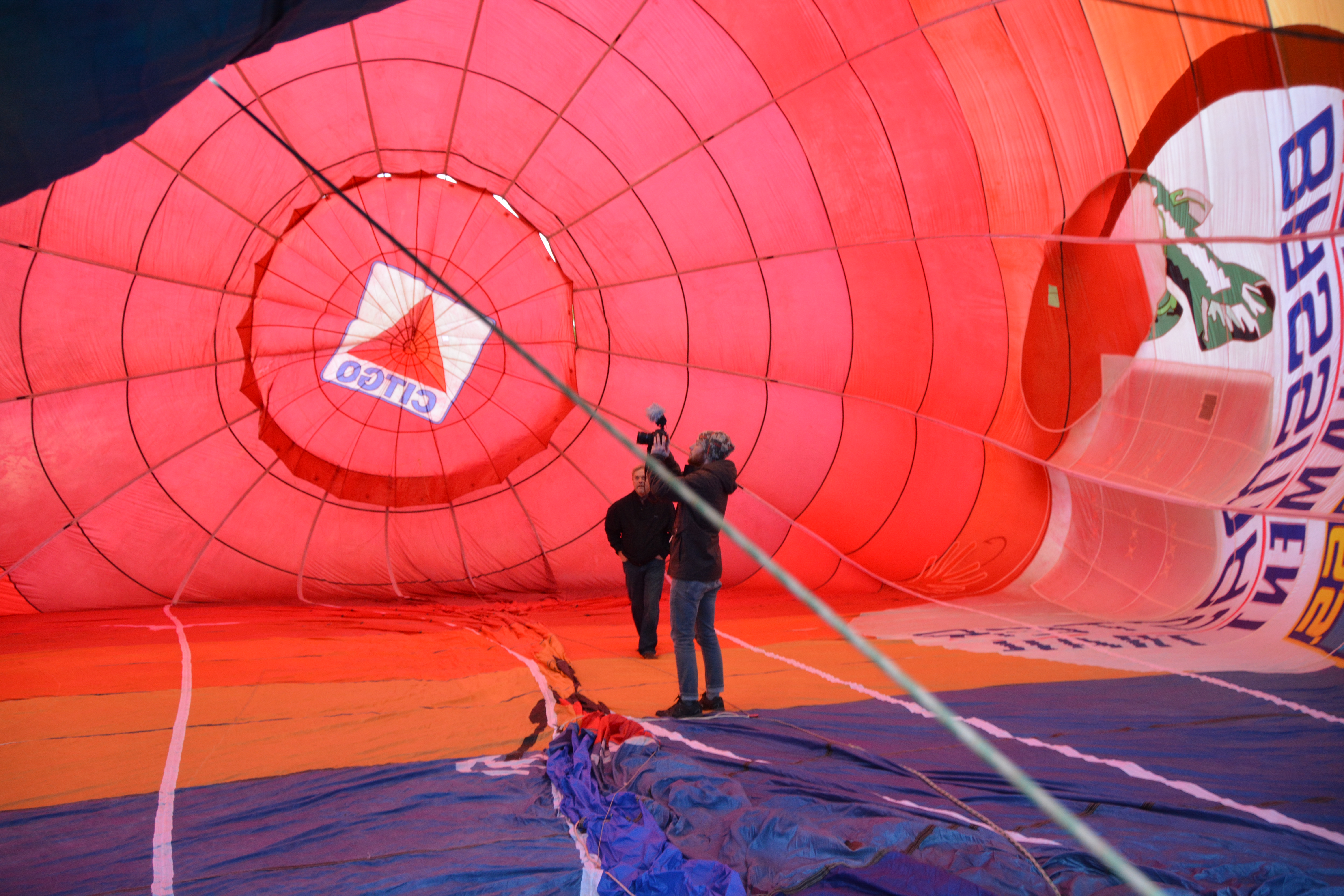 Mark showed one of the cameramen the inside of the balloon as it was being inflated with air from a large fan.
