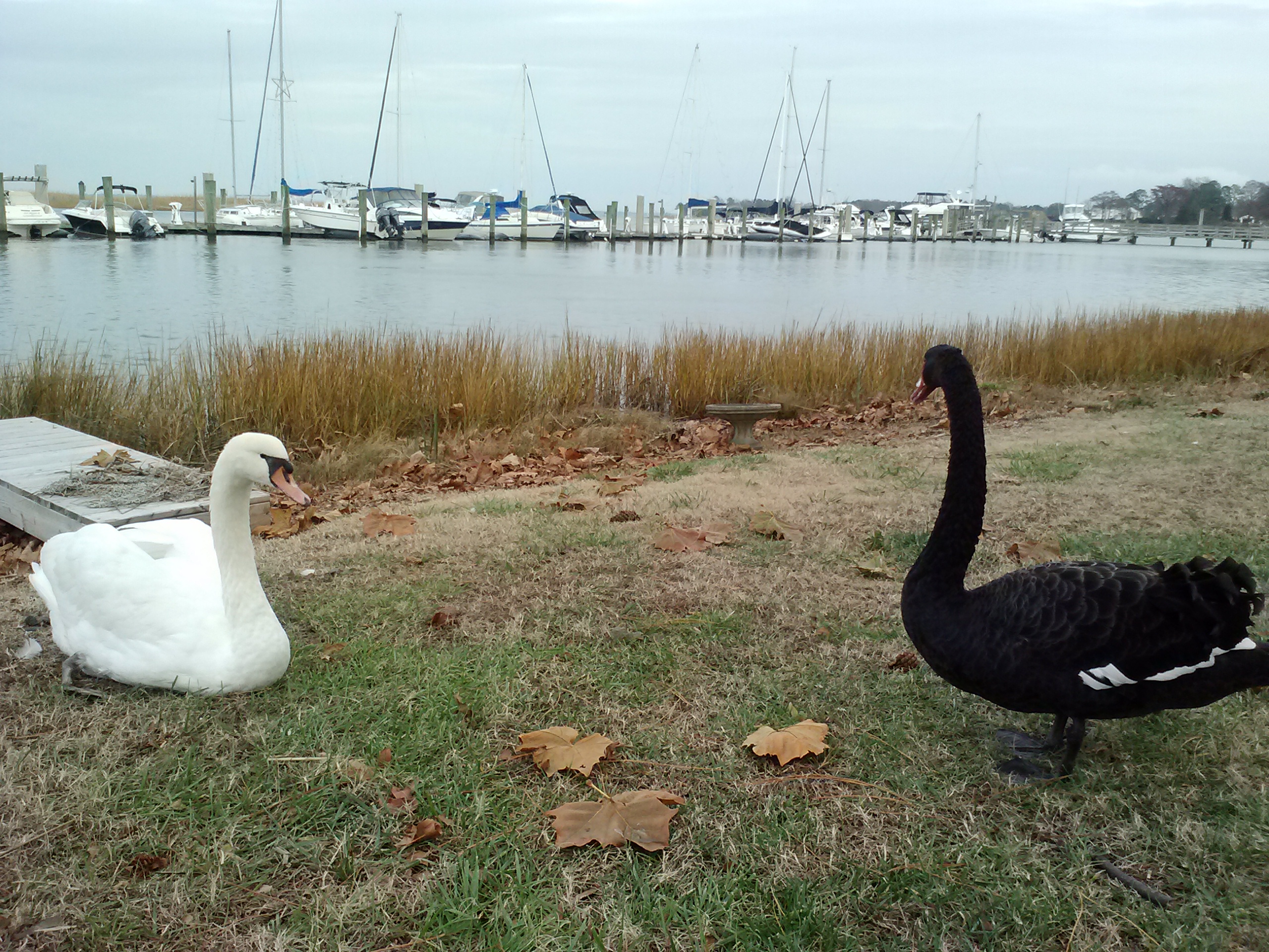 2.) Speaking of swans, this was the scene in our yard when I came home from the shop yesterday.