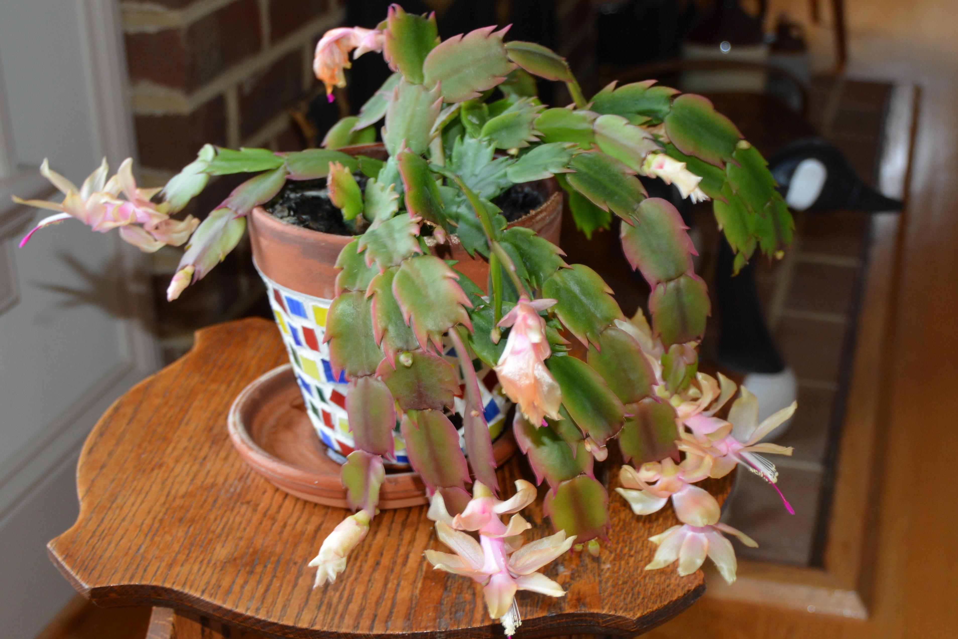 4.) This Christmas cactus continues to amaze me every year; it’s always full of soft, peach-colored blooms. I think the key word here is “neglect”.