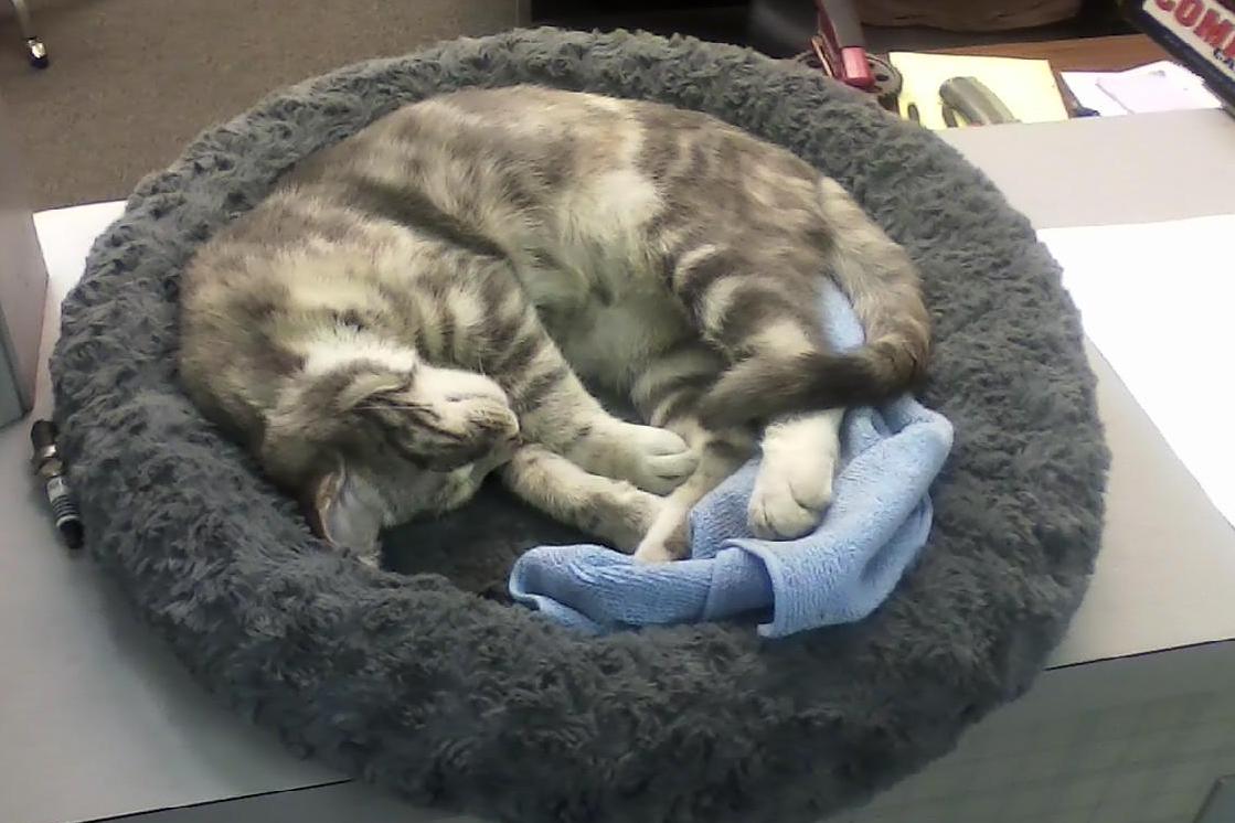 4.) Motor Man took this picture yesterday of a sound-asleep Gypsy. Yes, that’s a spark plug on the counter beside her bed. Why she hasn’t knocked that on the floor yet, we can’t imagine. (I think Santa needs to bring someone a larger bed….)