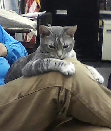 3.) Gypsy’s “picture of the week”. Motor Man took this with his cell phone. Yes, she’s completely in charge of the office and all who enter.