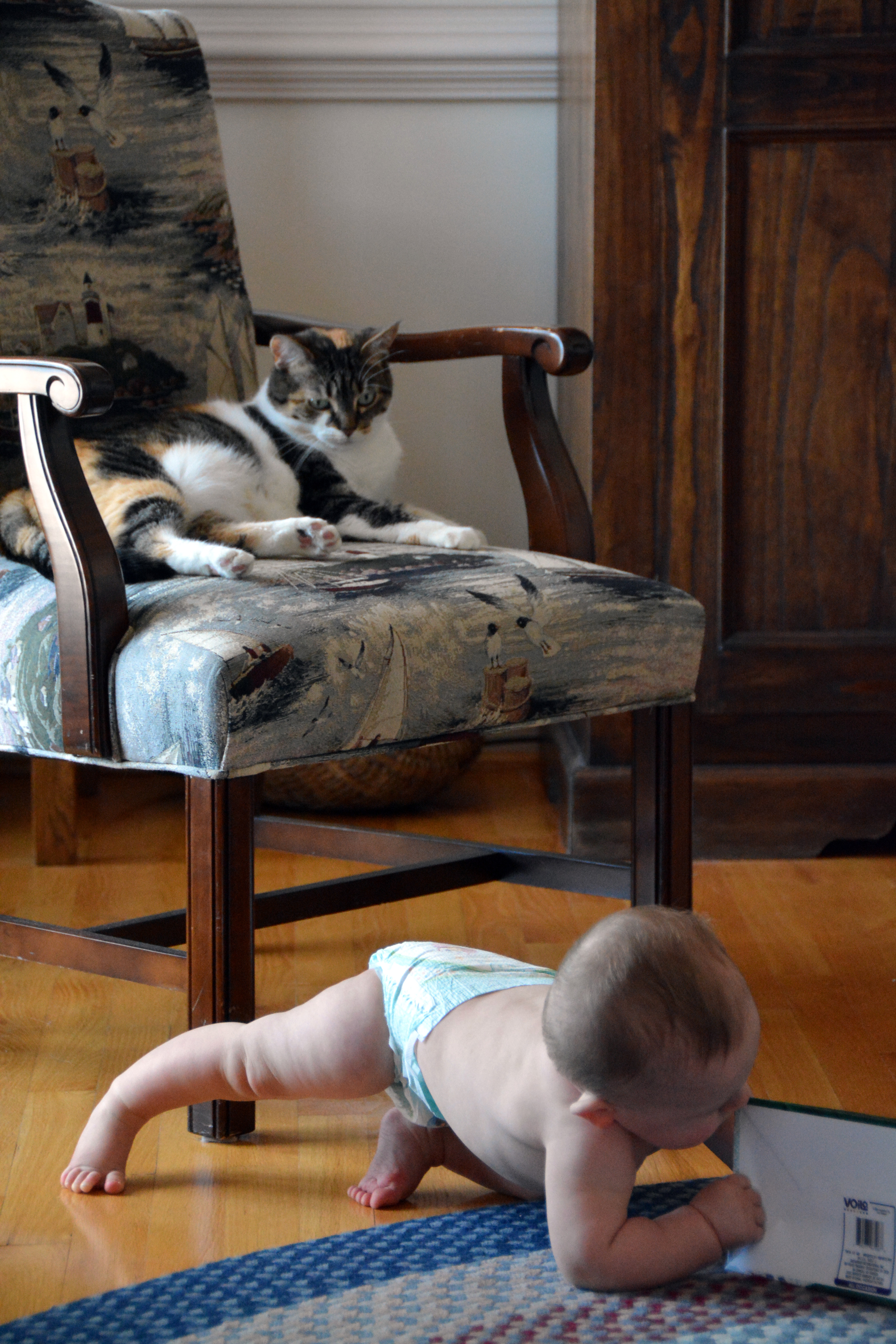 Jase just learned to crawl last week, so he’s still honing his skills. I loved watching him as he sat up after crawling etc. Sundae was definitely more interested in him than he was in her.