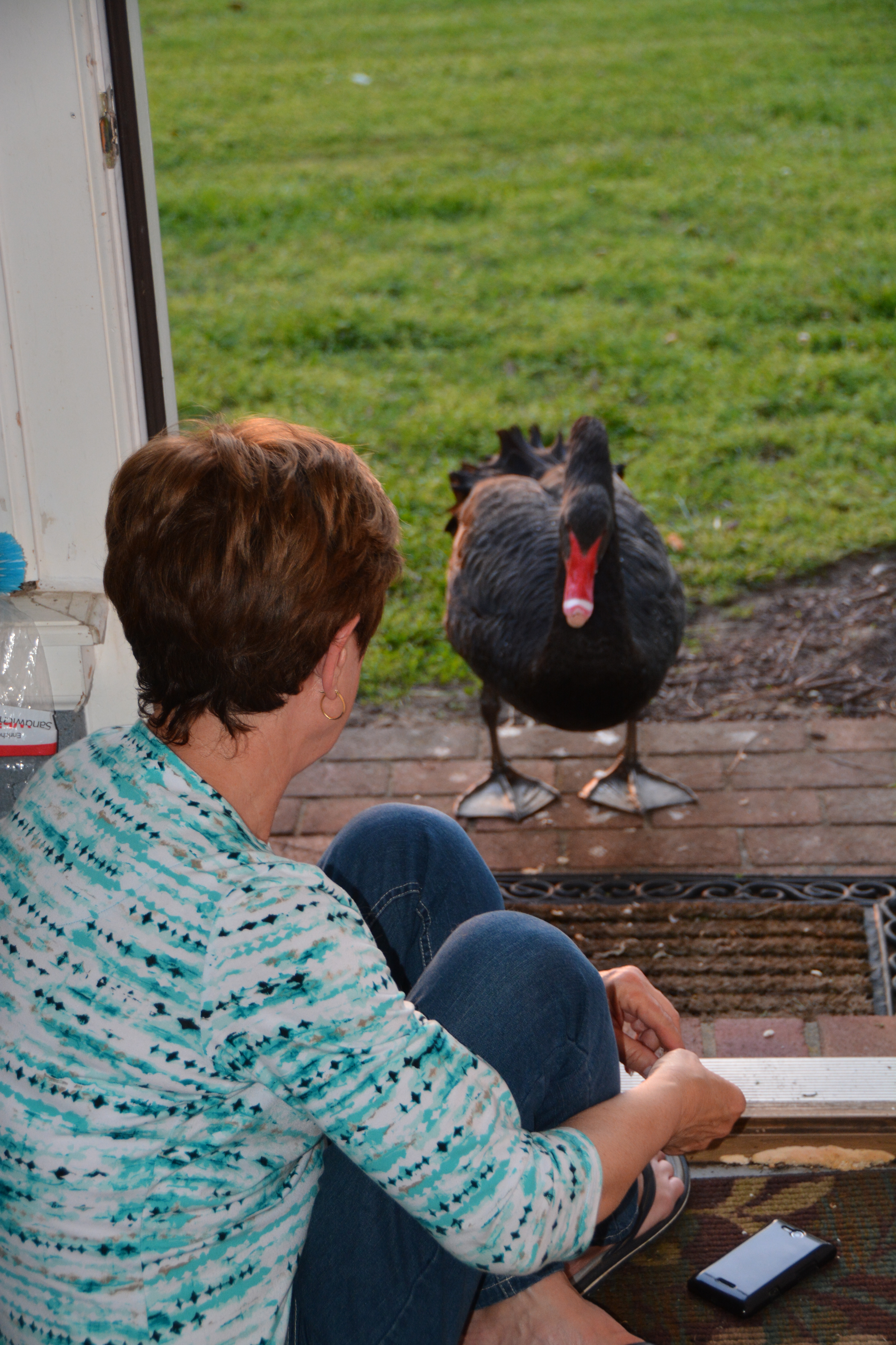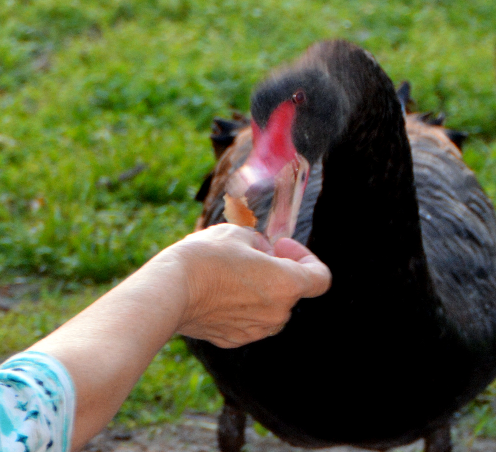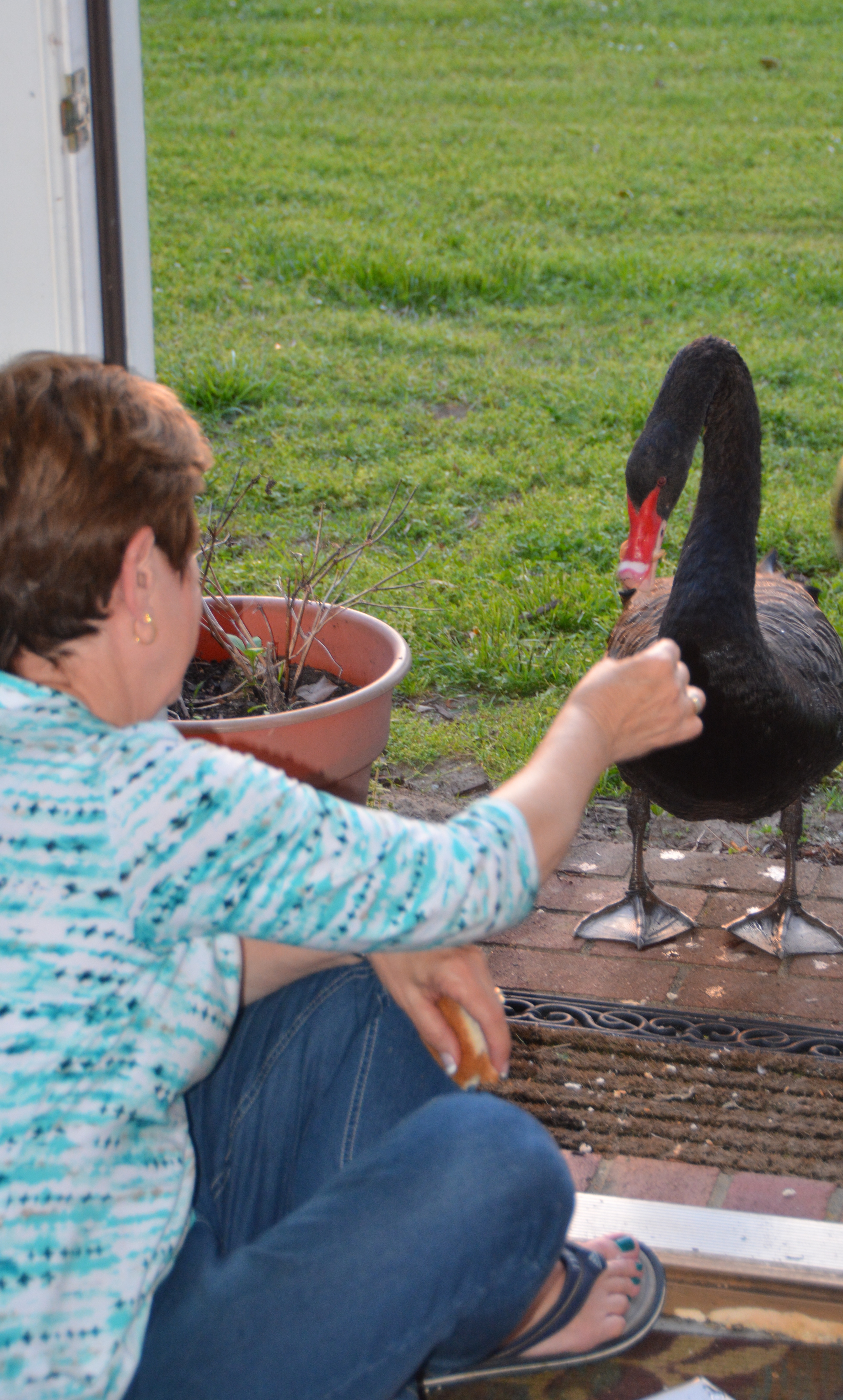 I was trying to get Groom Swan to take bread from my hand. He’s done that a time or two in the past.