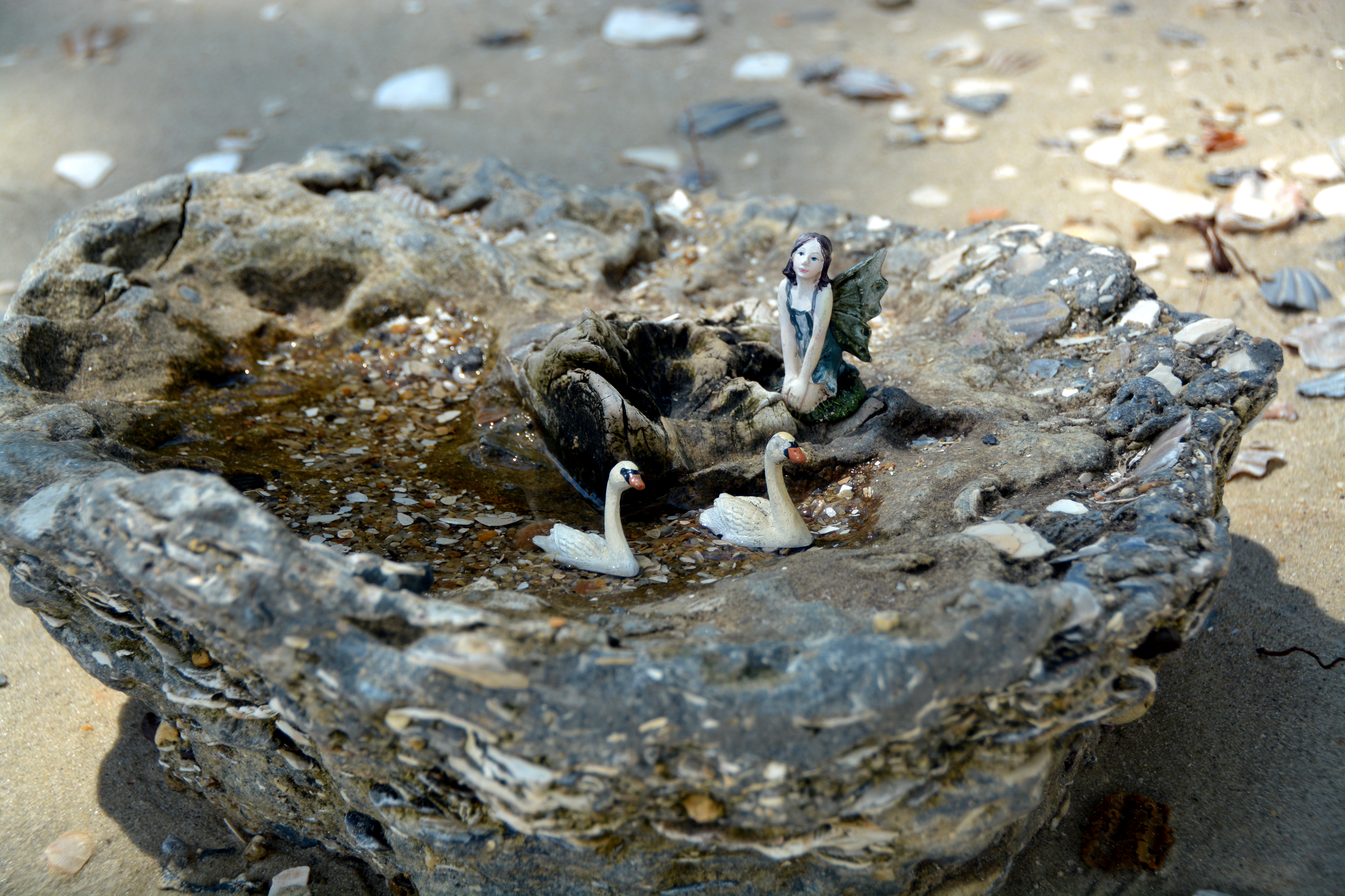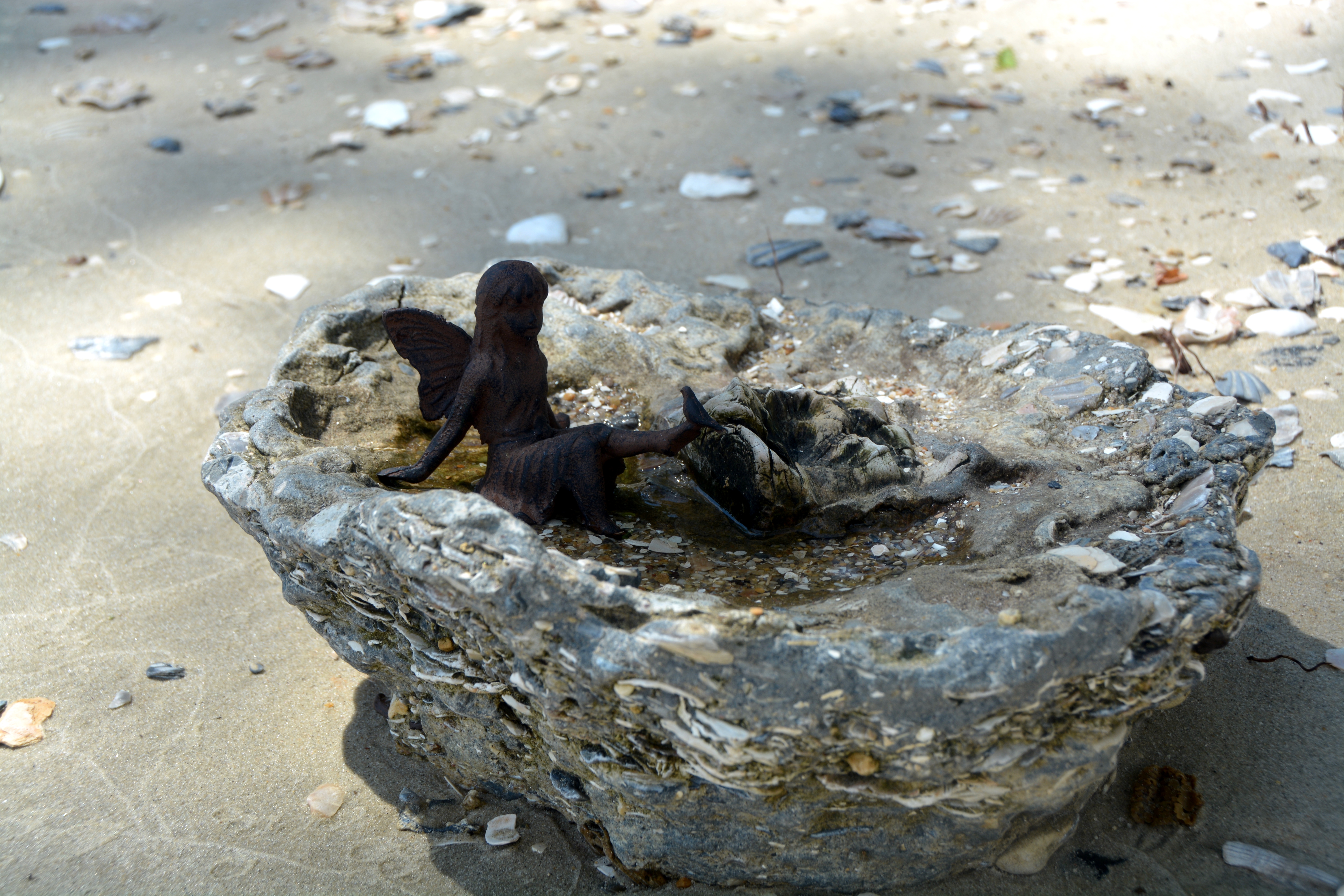 Not a doll, but a garden faerie, brought to the beach by two grown-up little girls.