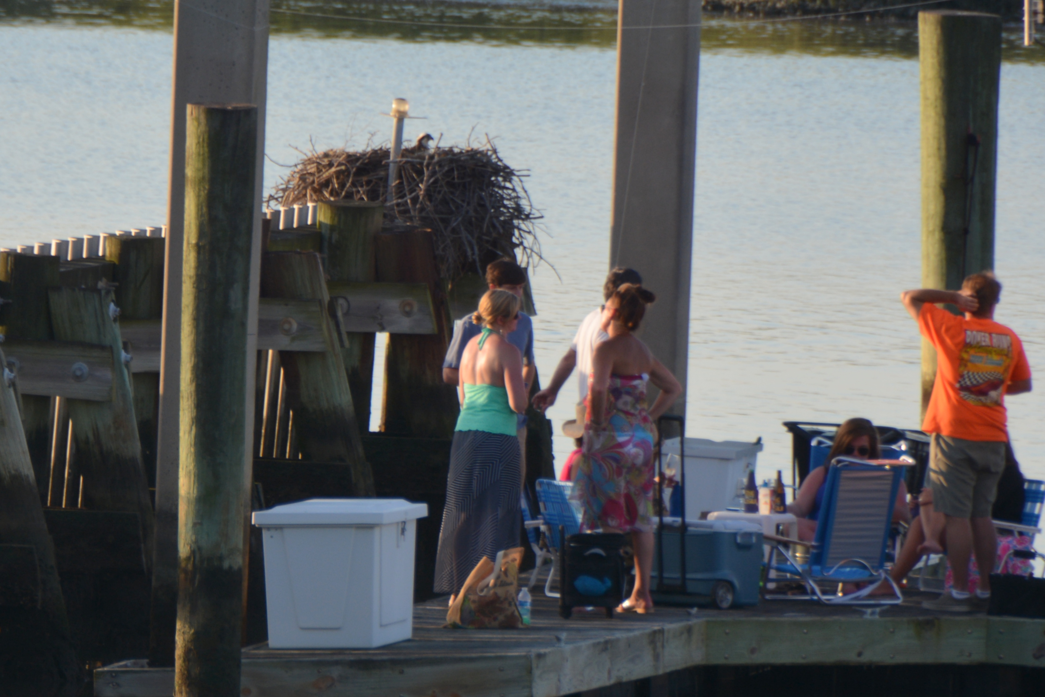 4.) You may recall my concern about the proximity of the “new” osprey nest to the marina. I wasn’t sure how the osprey parents would respond to all the human activity there once summer arrived. Apparently the ospreys are adapting, which is a good thing. As you can see by this picture, that is a party spot on the weekends.