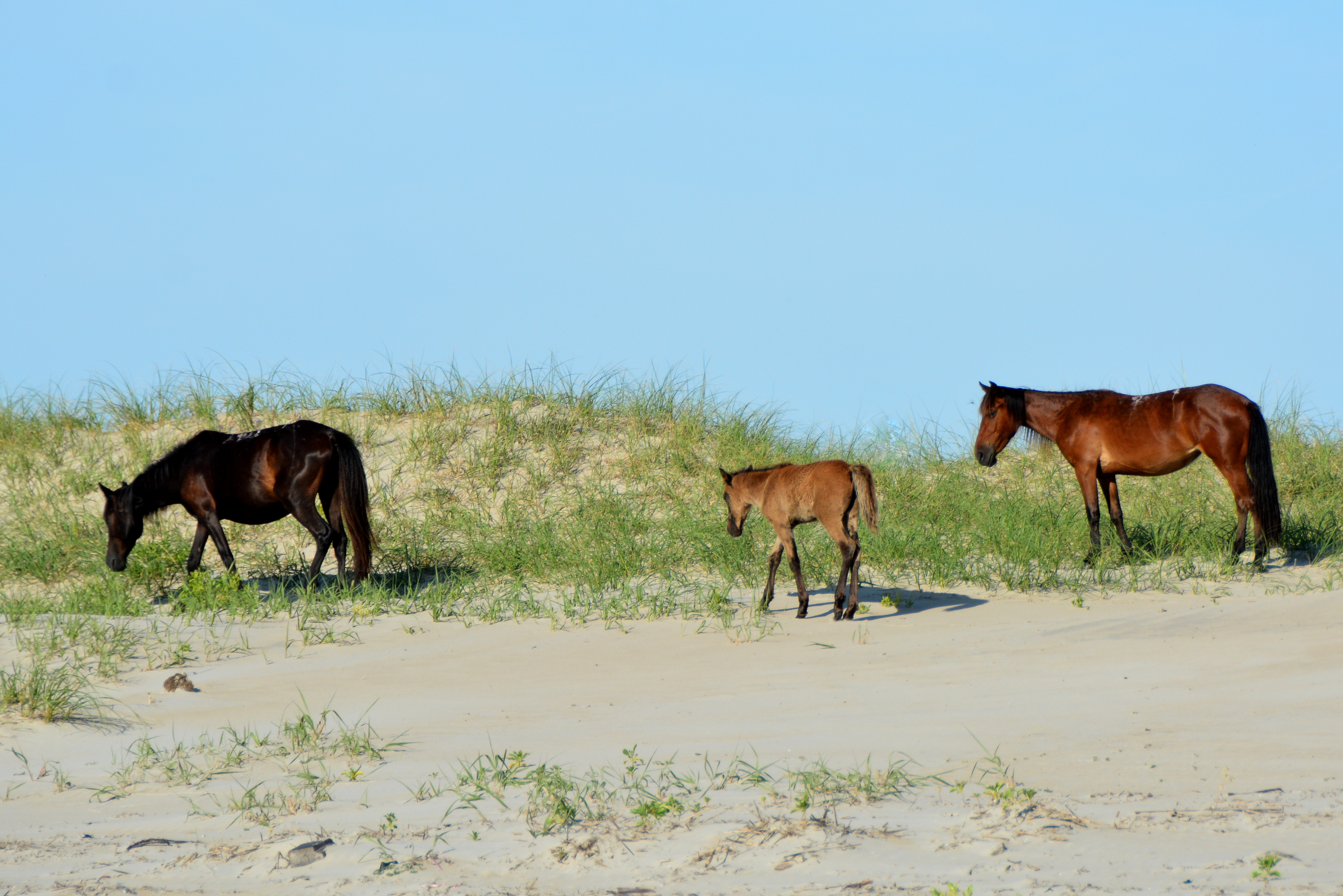 As a supporter of the Corolla Wild Horse Fund, I should mention that Currituck County law states that you must keep a minimum of 50 feet from the horses. In many of my photos, they appear much closer. I use a zoom lens (often), and some of my pictures are cropped, which, of course, also makes the horses seem closer than they actually are.