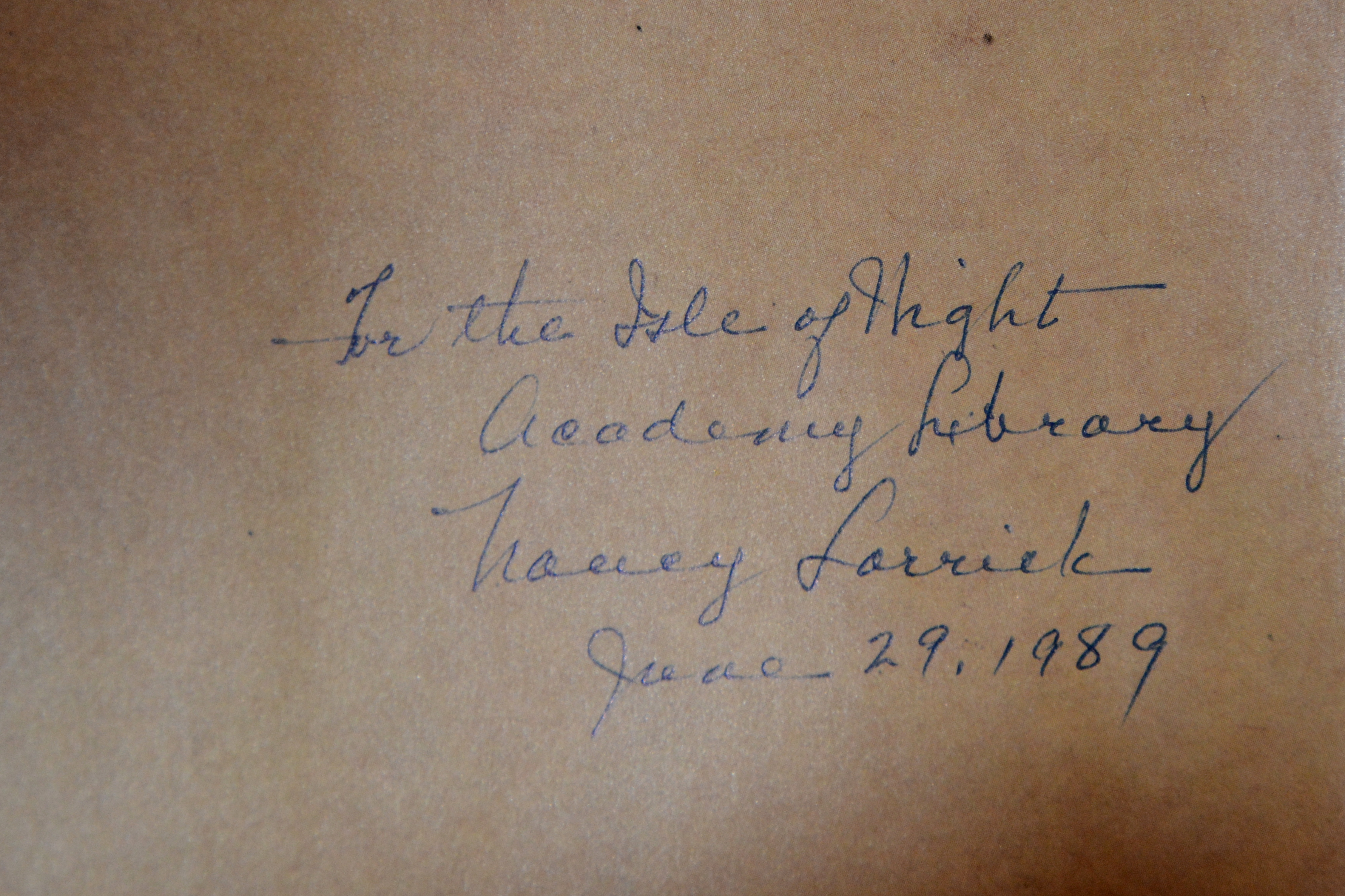 2.) The author signed it to the library of Marshall’s alma mater. Although neither of us remember it, he could possibly have read this book in elementary school.