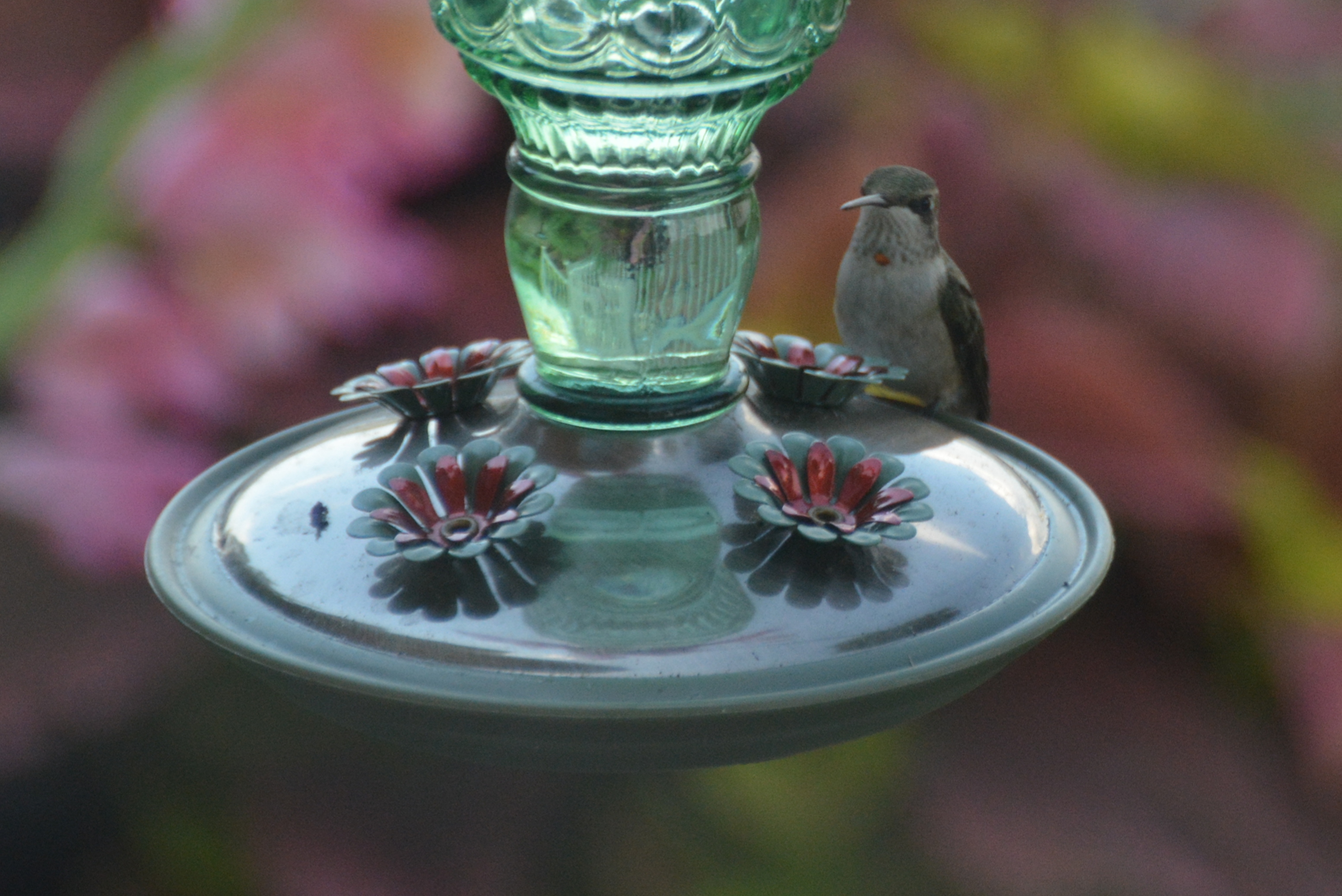 3.) Motor Man and I continue to be amazed (okay, me more than him) at “our” hummingbirds. I know at least two have found our feeder, and I managed to get this picture of one of them yesterday. From information I found online, I think this may be a juvenile male ruby-throated hummie.