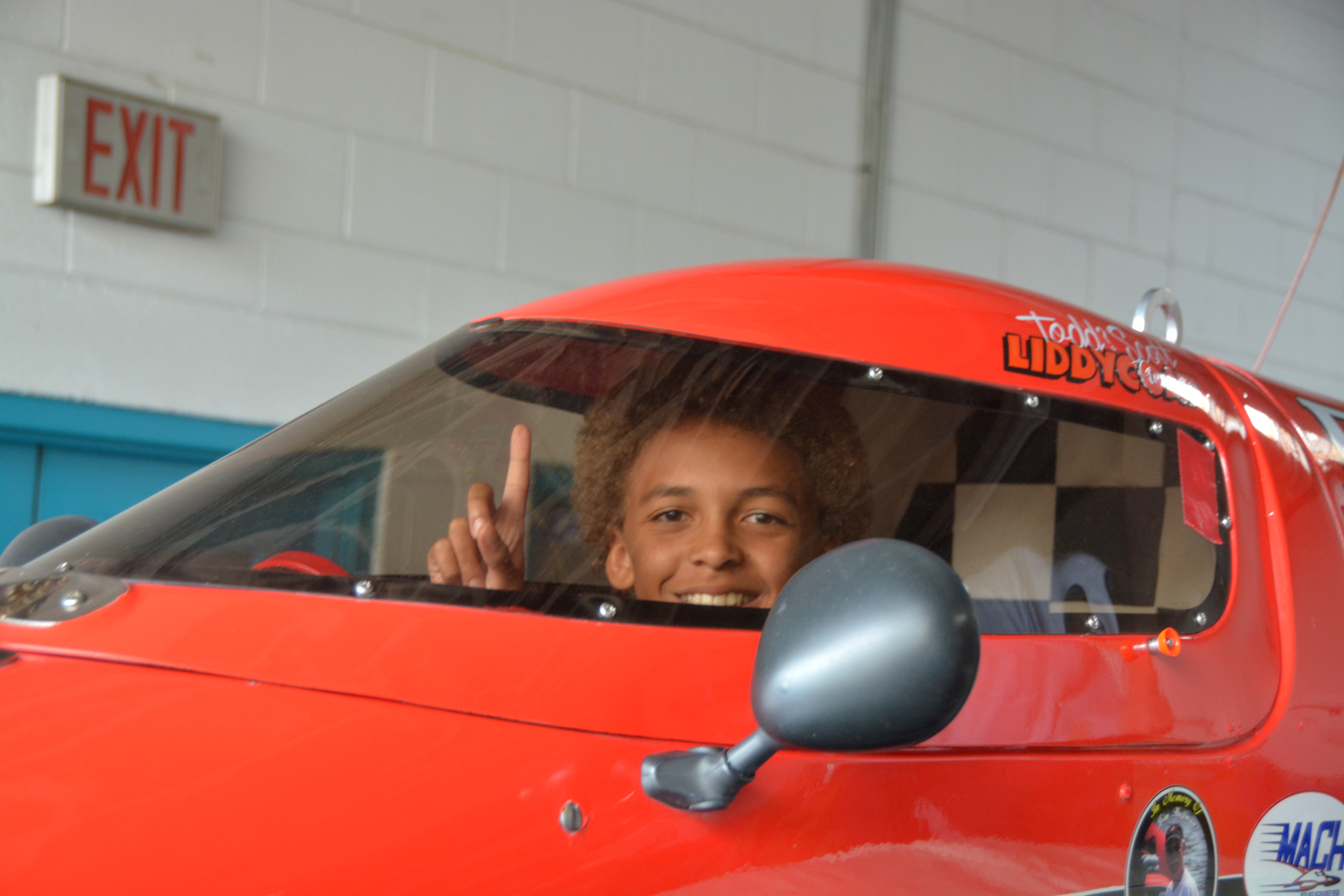He sat in a hydroplane (race boat) at Motor Man’s shop:
