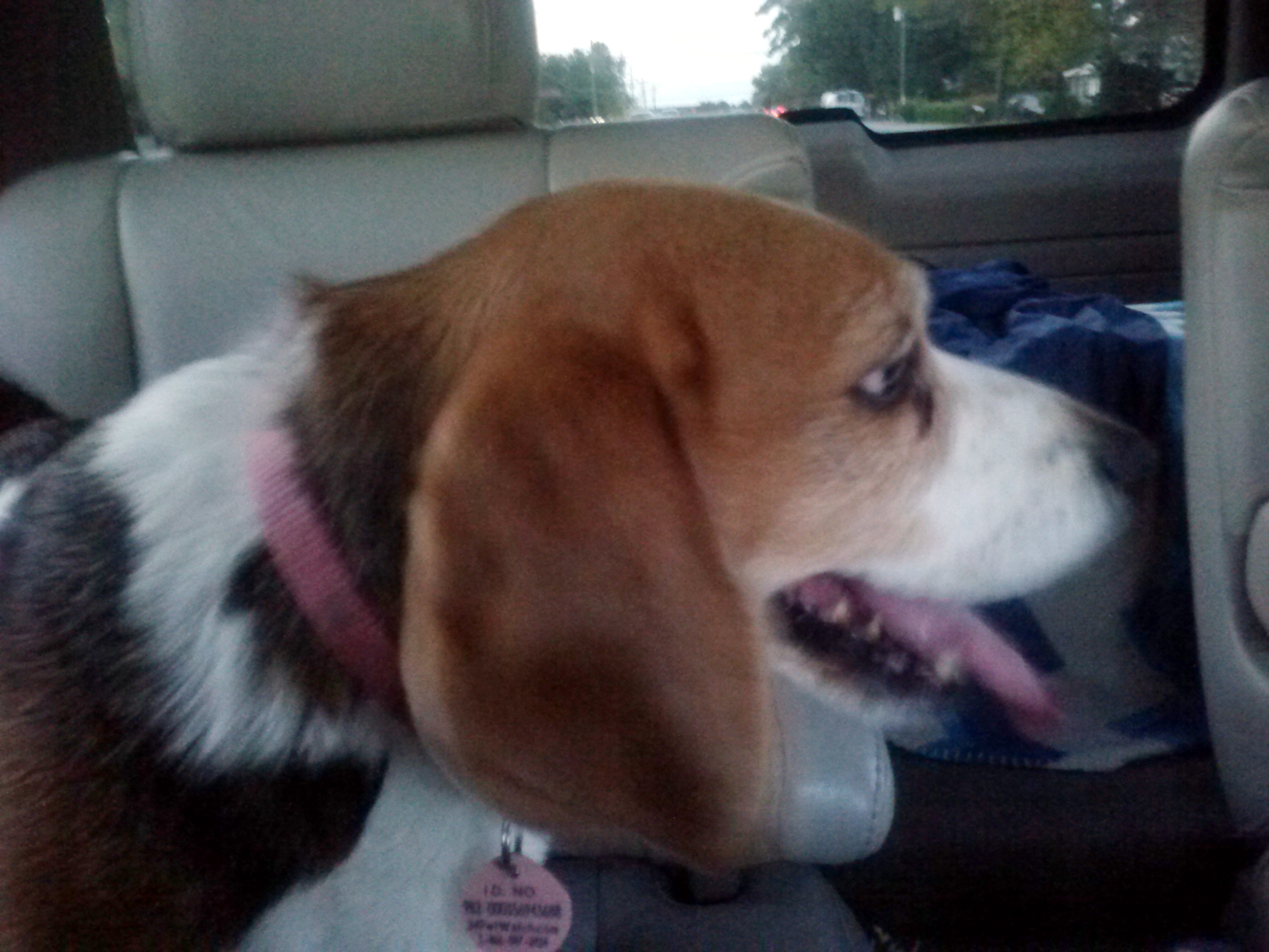 In the meantime, I called my vet to ask if they could scan the beagle to check for a micro chip.  They were just closing for the day. Then I called our county dispatcher to ask if someone was still at animal control.  She said that she’d have someone meet us there. We hated to take the beagle anywhere, assuming that it lived in that area. But we couldn’t just leave it: we’d already seen it nearly struck by a vehicle.