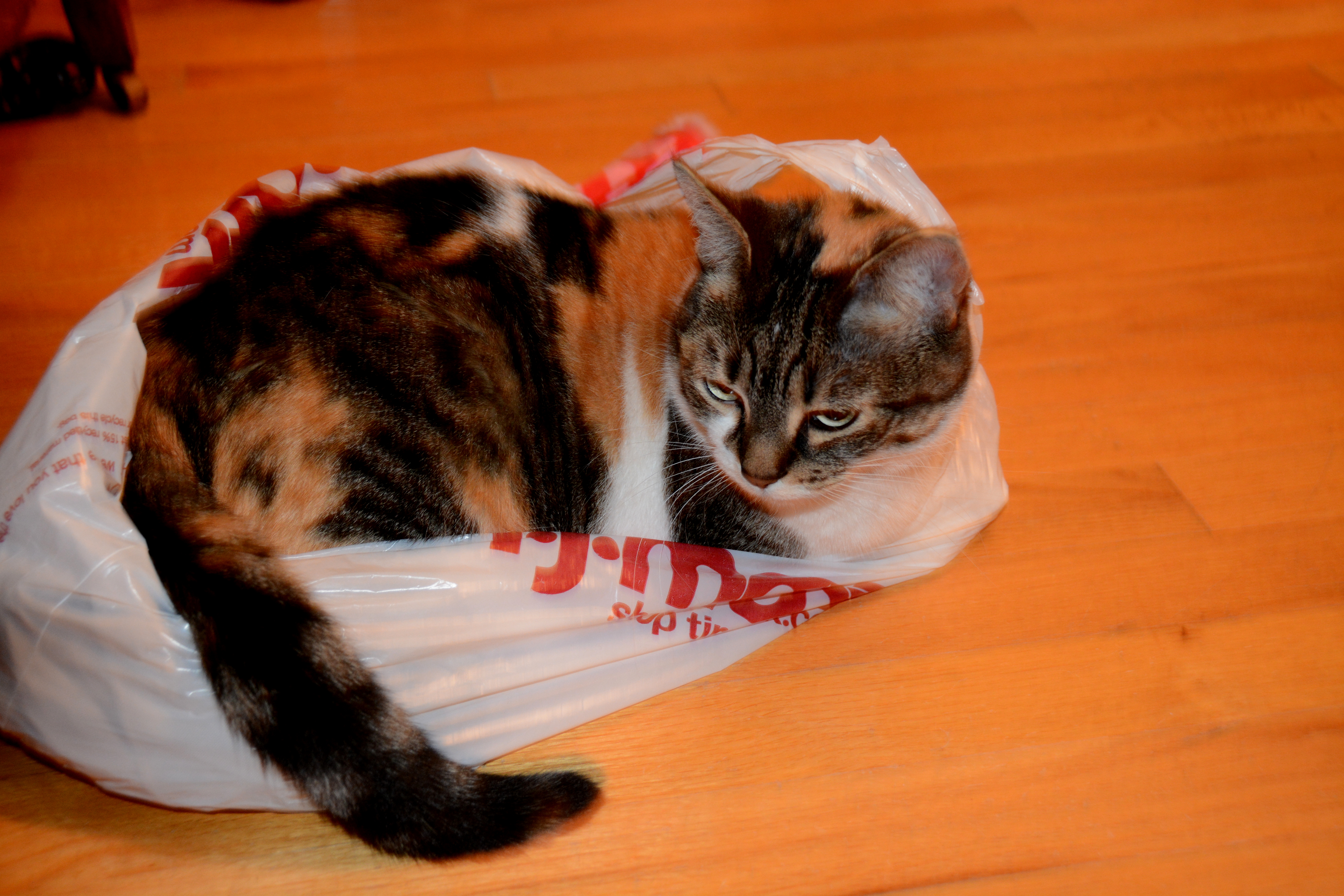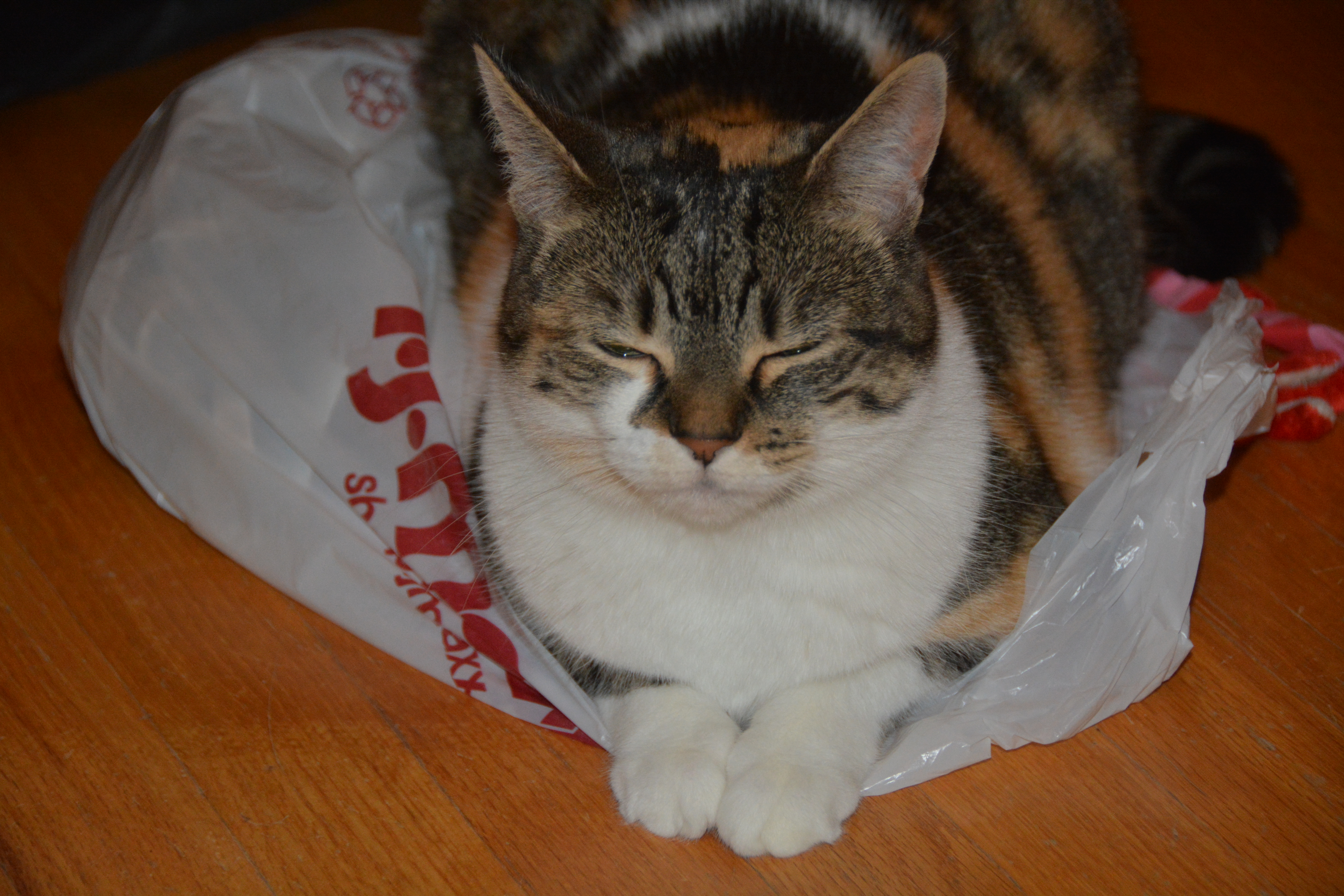 She turned and wiggled and twisted to get her little nest exactly like she wanted, all the while enjoying the rustling sound of the plastic.