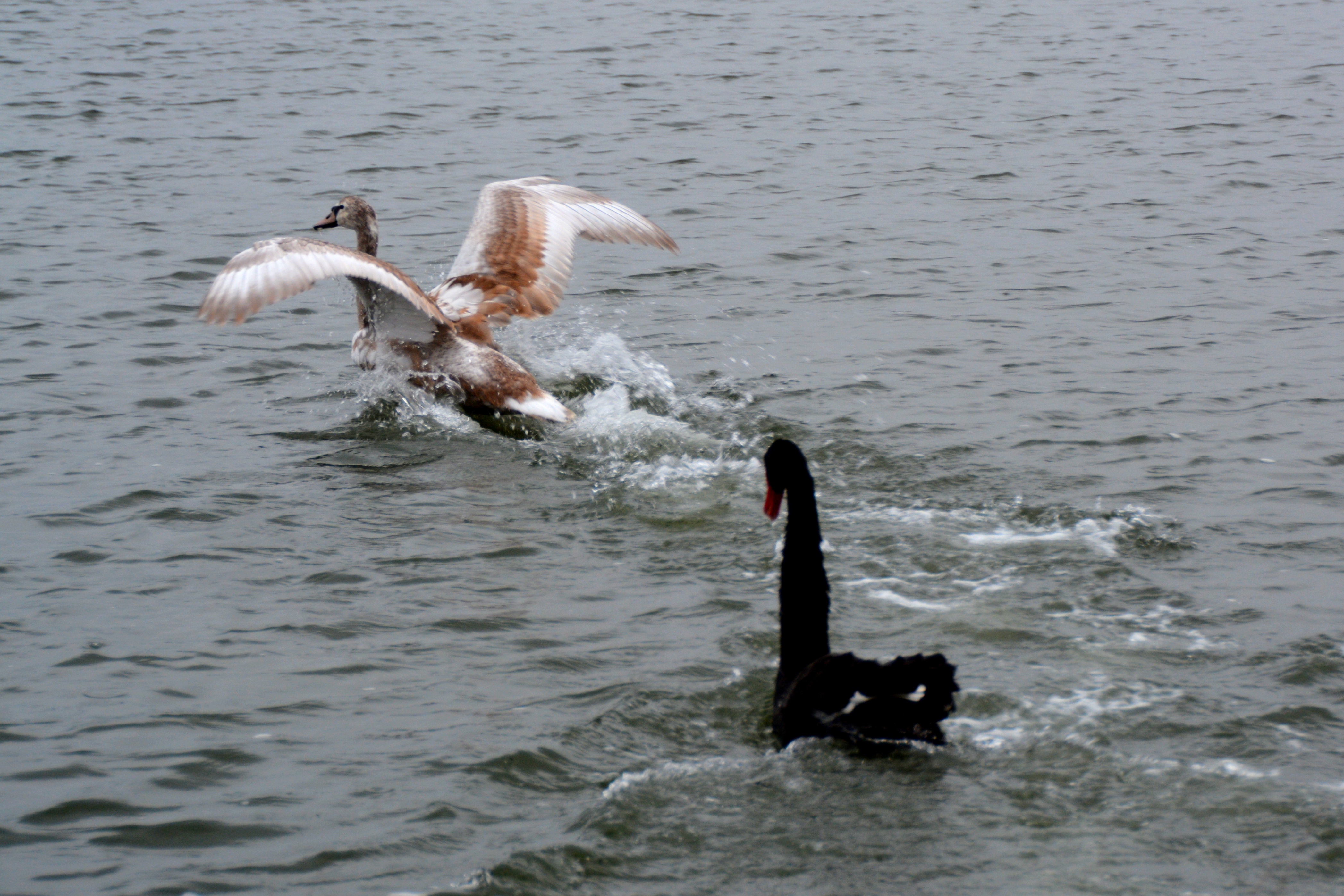 As far as we can tell by looking out the window, all three swans get along fairly well as long as food isn’t involved. As soon as I go out with bread, however, young swan’s welcome is quickly cut short.