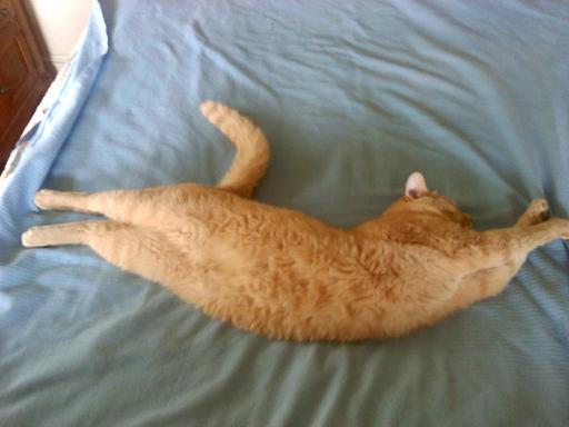 There’s a winter storm heading our way later today. I’m guessing Marshall will get pictures of Snugg all curled up, staying warm, rather than in his usual stretched out poses.