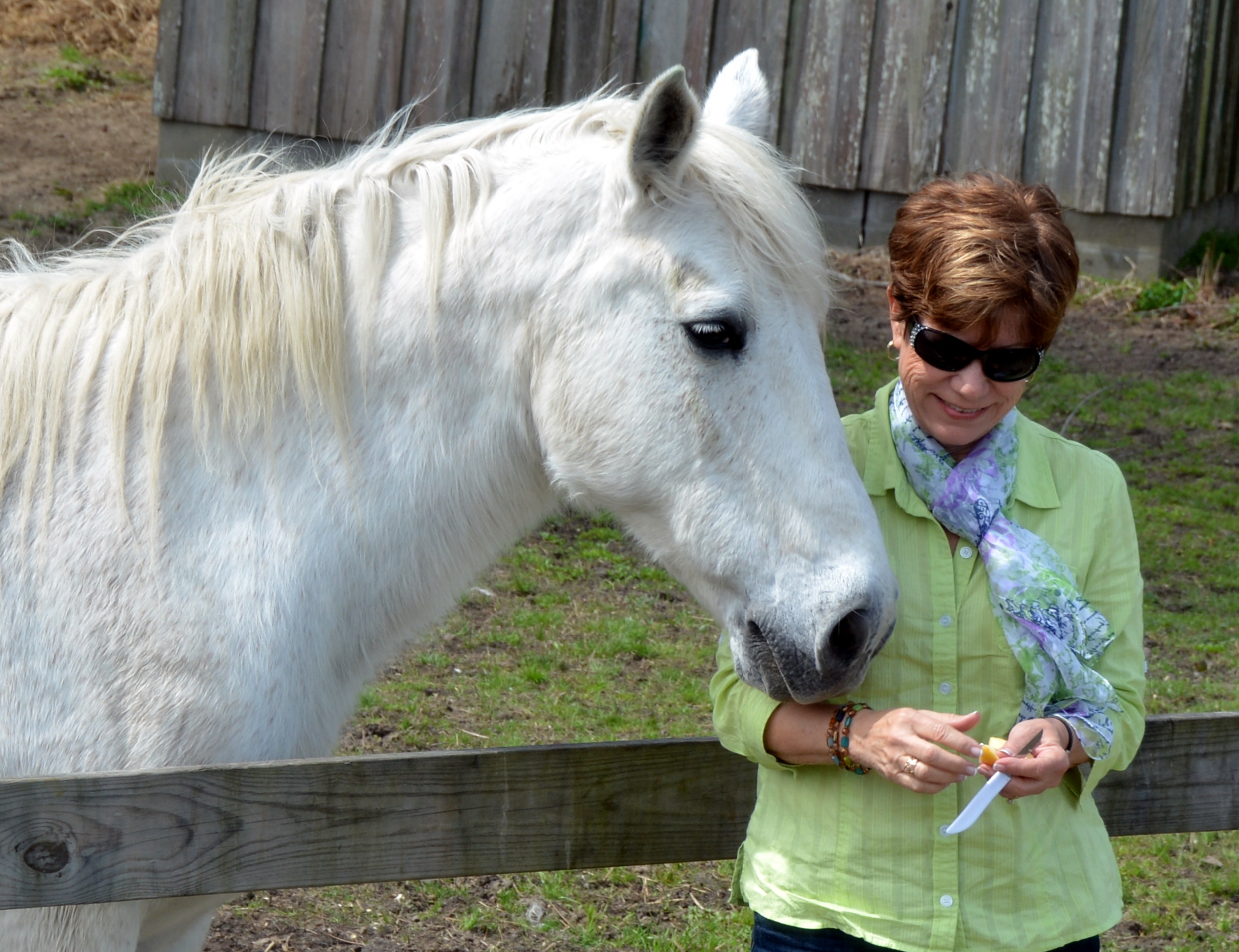 She was happy to see us, and happier to see the apple we brought her for a treat. (I can just imagine her saying: “Hurry…hurry!”.