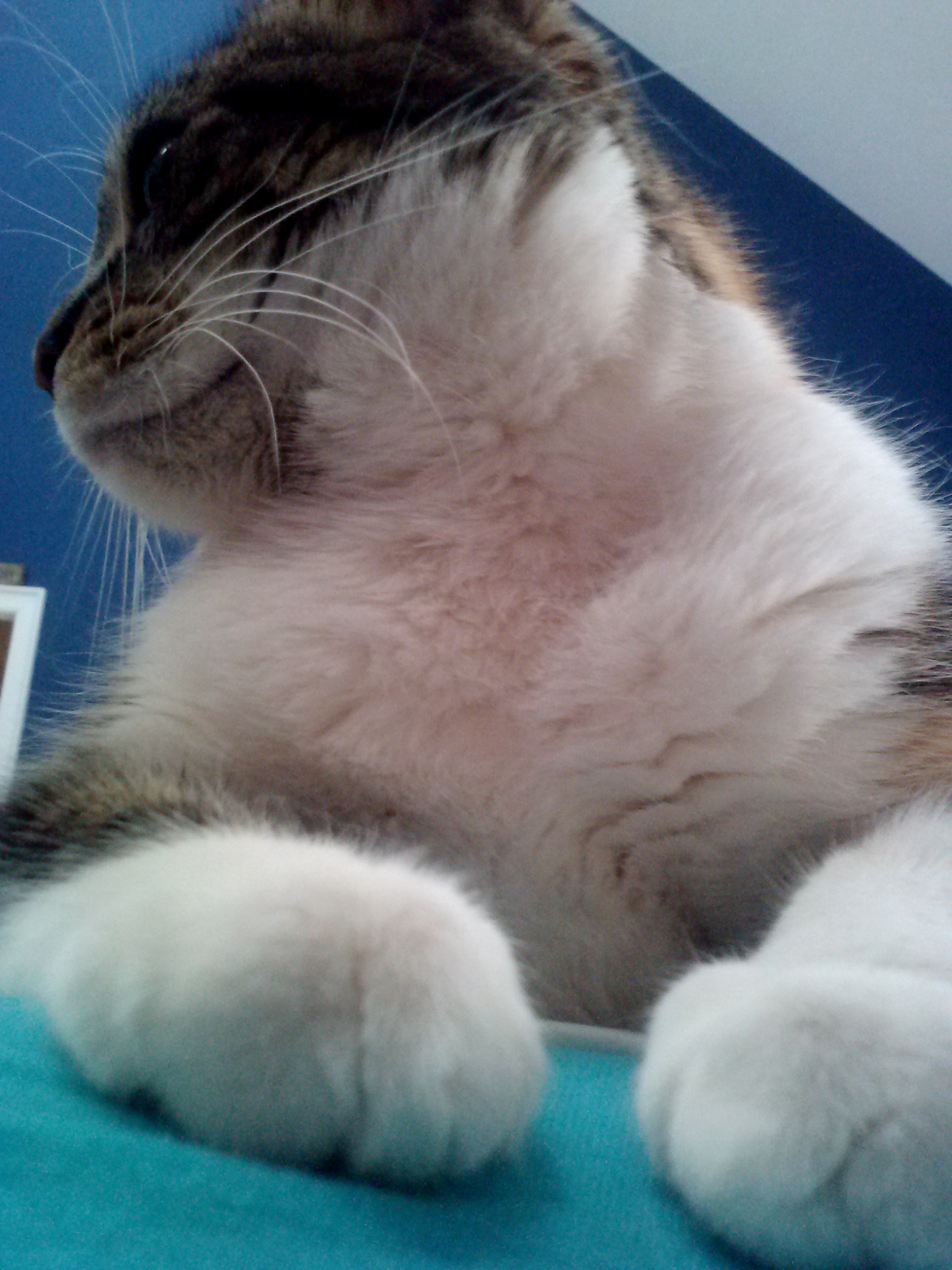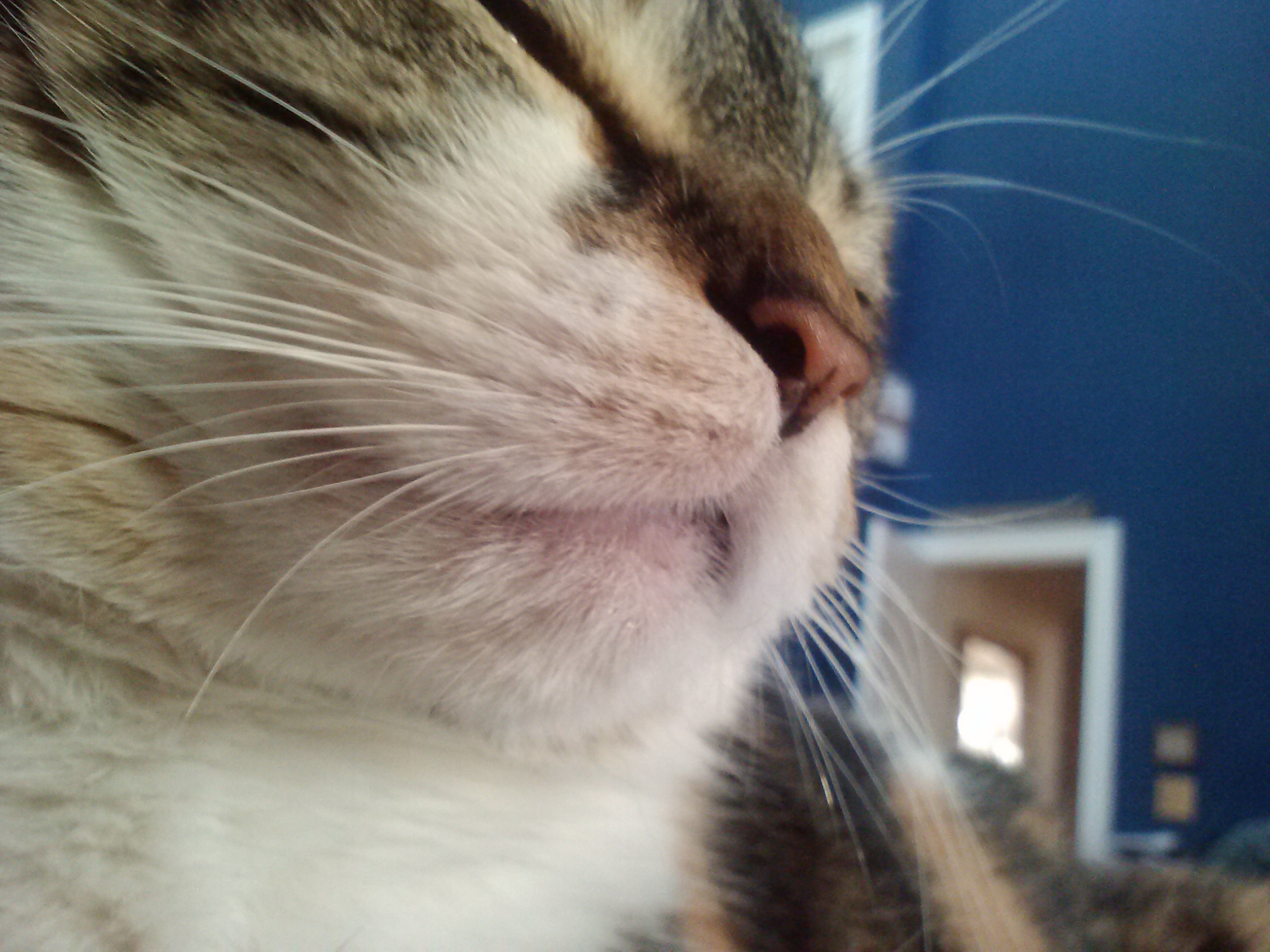 Since  my cell phone charger is on my bedside table, the other morning, I decided to snap a few pictures of her, “up close and personal”.