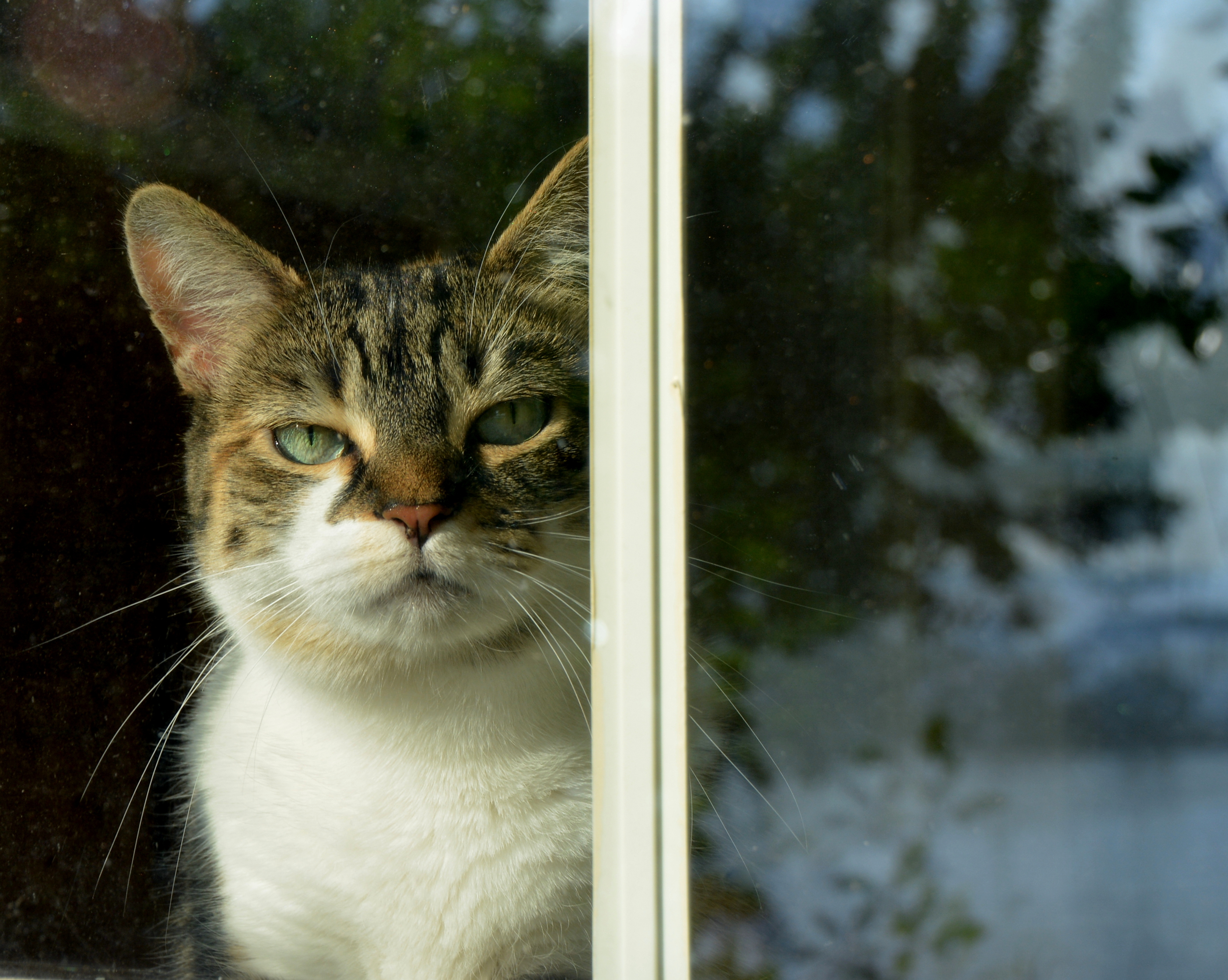 “Silly human, you’re taking pictures of a cat STATUE, when I’m sitting right here… living, breathing feline perfection.“