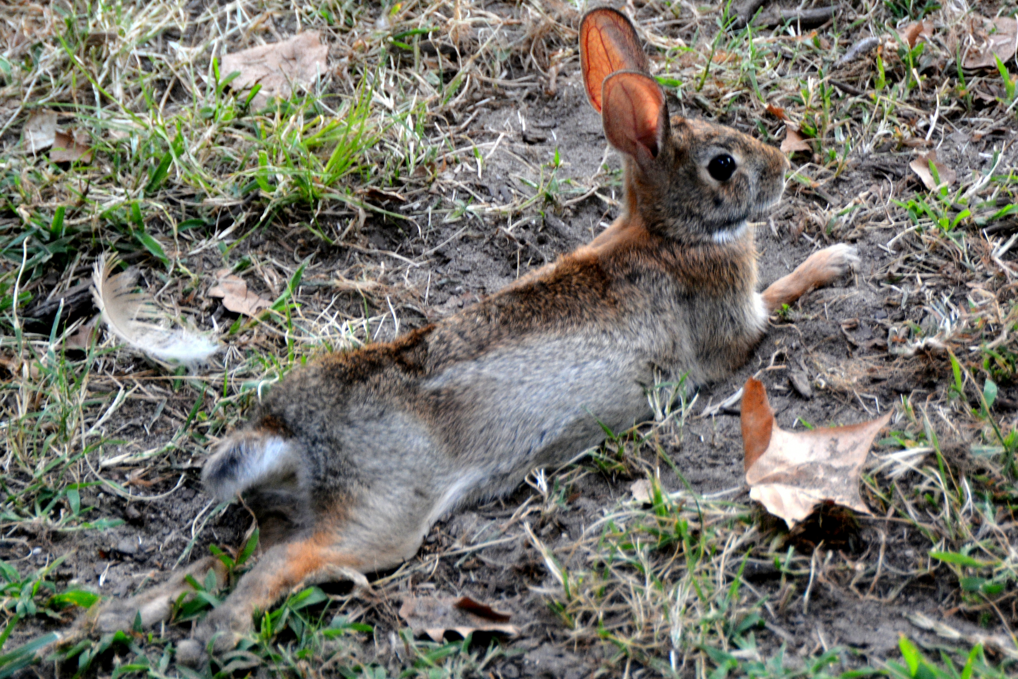 2.) It’s been hot here recently. Really hot. So hot that bunnies have resorted to digging little cool-off spots in the dirt. Love his little stretched-out hind legs.