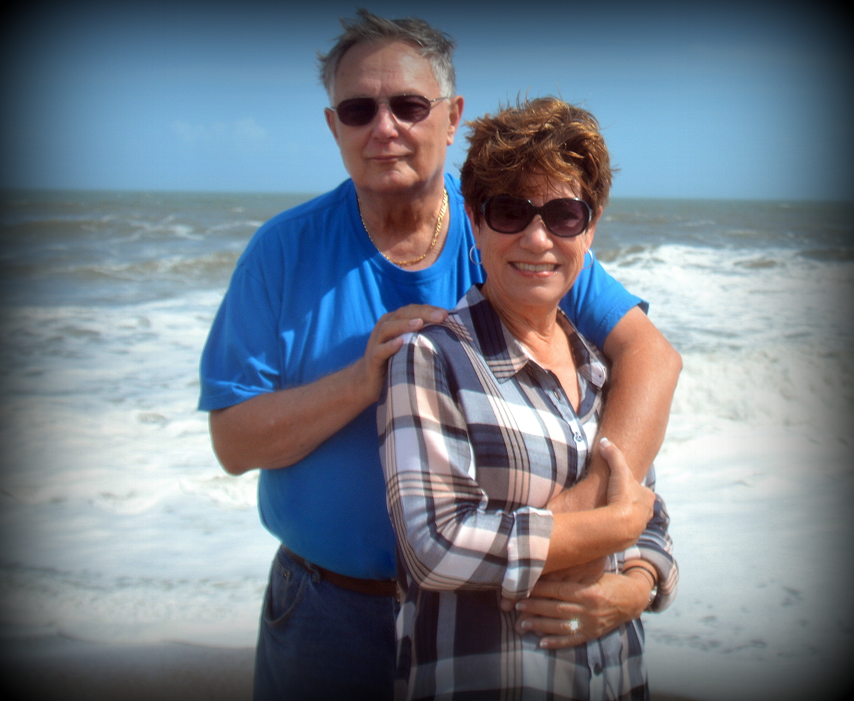 4.) Last week, during our trip to the Outer Banks during the storm, we met a local couple who had come to the oceanfront to see the waves.  We took a photo of them, and they returned the favor. At that point, we were definitely sporting the windblown look.