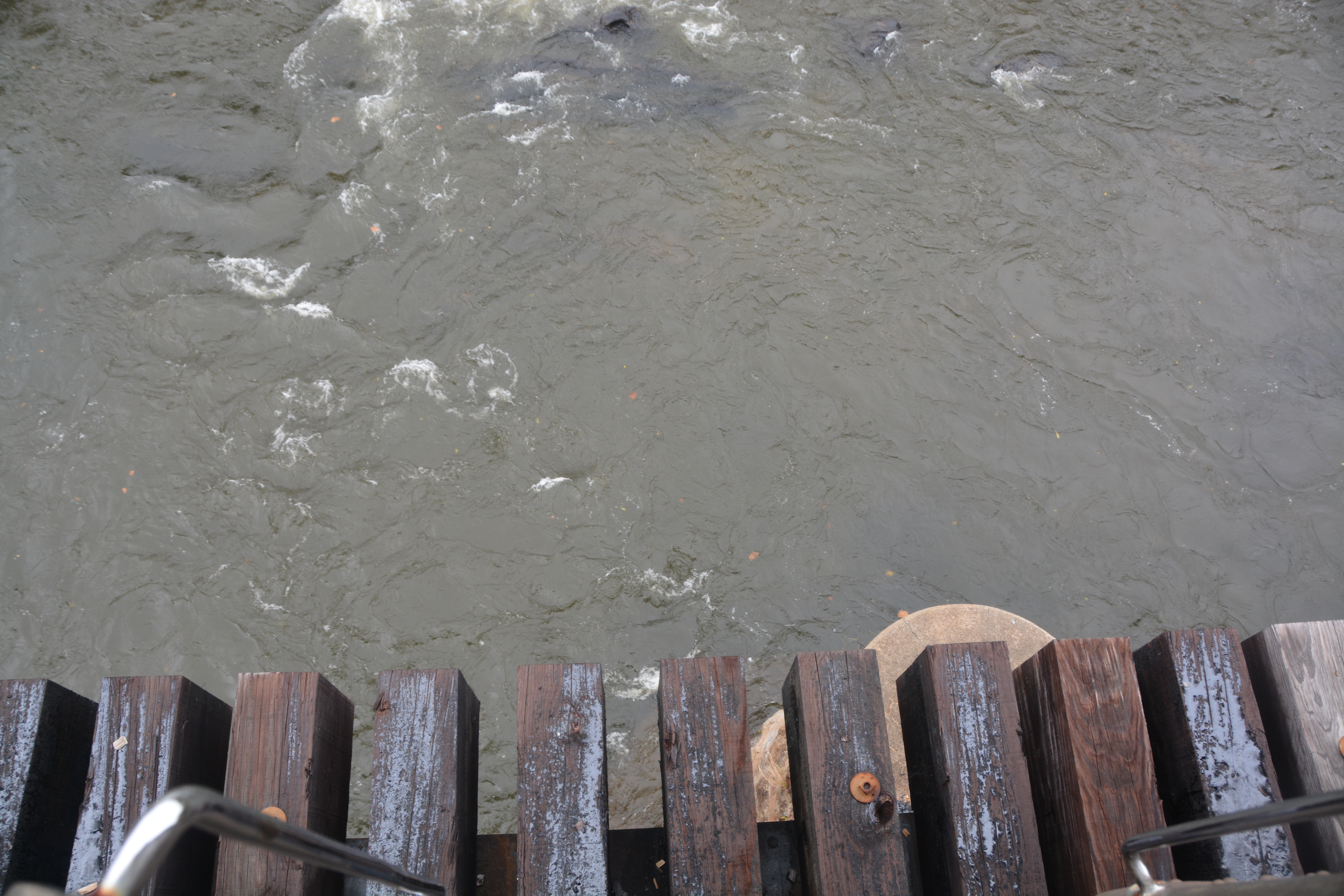 We sat “over the river” for several minutes.  Motor Man and I walked to the section of the train between cars, and he suggested that I take a picture of the track below us.  Not much there between us and the river…