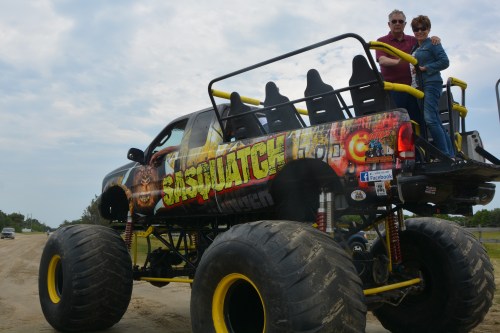 Meanwhile, further up the beach, a fundraiser was taking place for the Carova Fire Department. One way to donate was to purchase a ride on the beach on the Monster Truck, Sasquatch. Motor Man and I thought that would be fun, so we paid our money and climbed aboard.