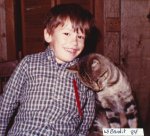 Also before Marshall was born, his dad and I had been to see the movie, Smokey And The Bandit when it was showing in theaters. When we came home, there was a little gray tabby kittten on our front porch. Of course, we named him Bandit, and he was with us for about seven years, including Marshall’s early childhood. (Click to enlarge)